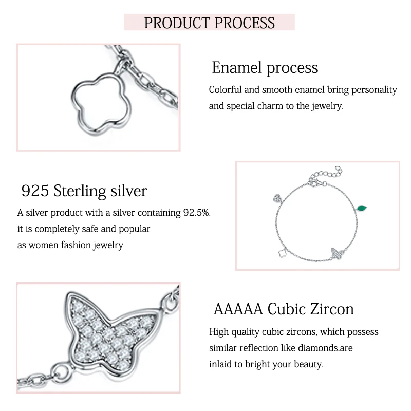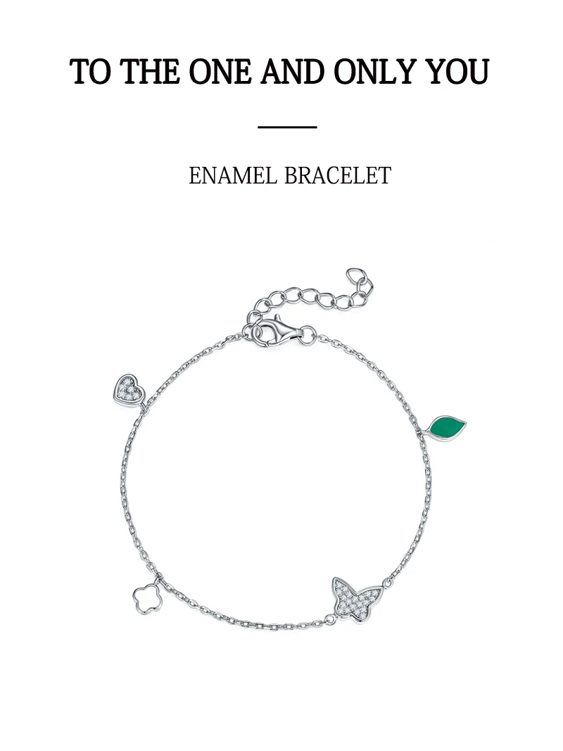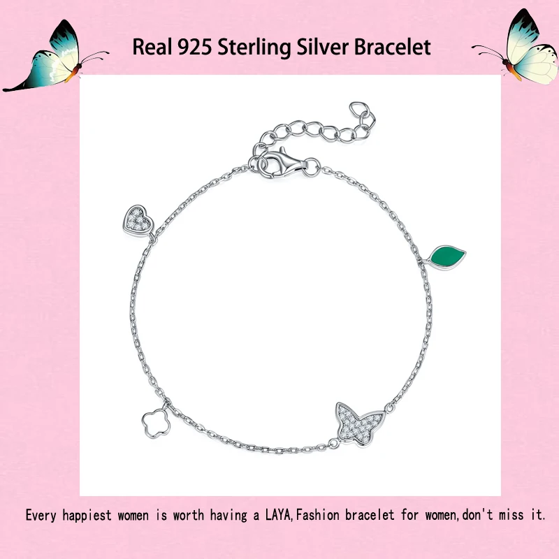 Laya стерлингового серебра 925 пробы мода высокое качество циркон бабочка четырехлистный клевер в форме сердца лист белый эмалевый браслет для женщин свадебные украшения подарок 2022 тренд
