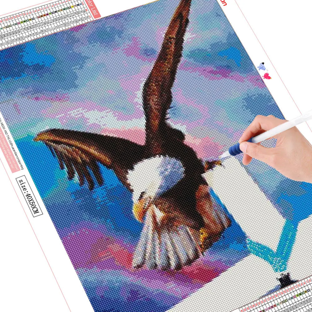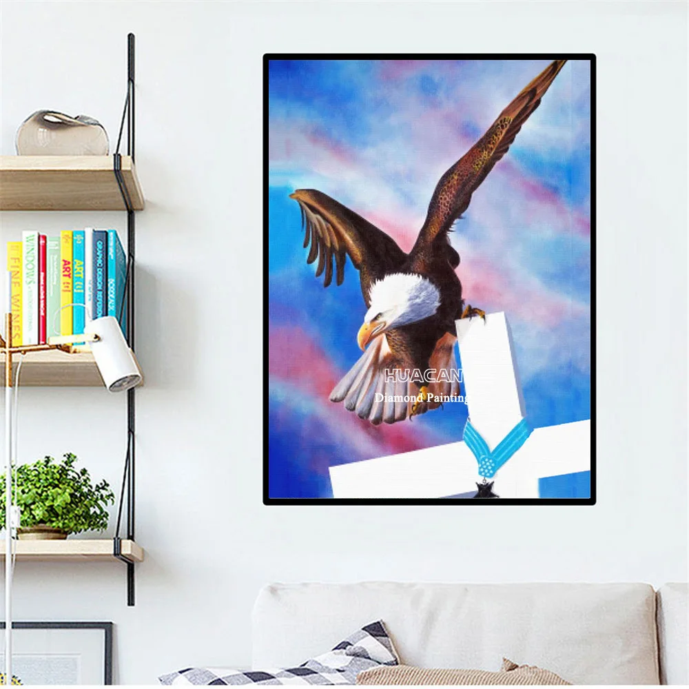 Полноразмернаякруглая 5d алмазная живопись HUACAN с орлом, рукоделие, алмазная вышивка сделай сам, животное, мозаика, крест, вышивка на стену