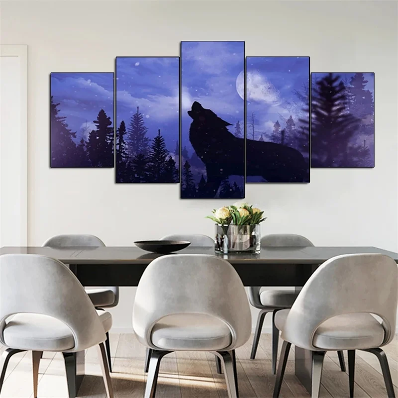 Картина на холсте с изображением волка, ночного рыва, снега, фиолетового пейзажа, картина в скандинавском стиле для гостиной, домашний декор, плакат, настенное искусство, Декор