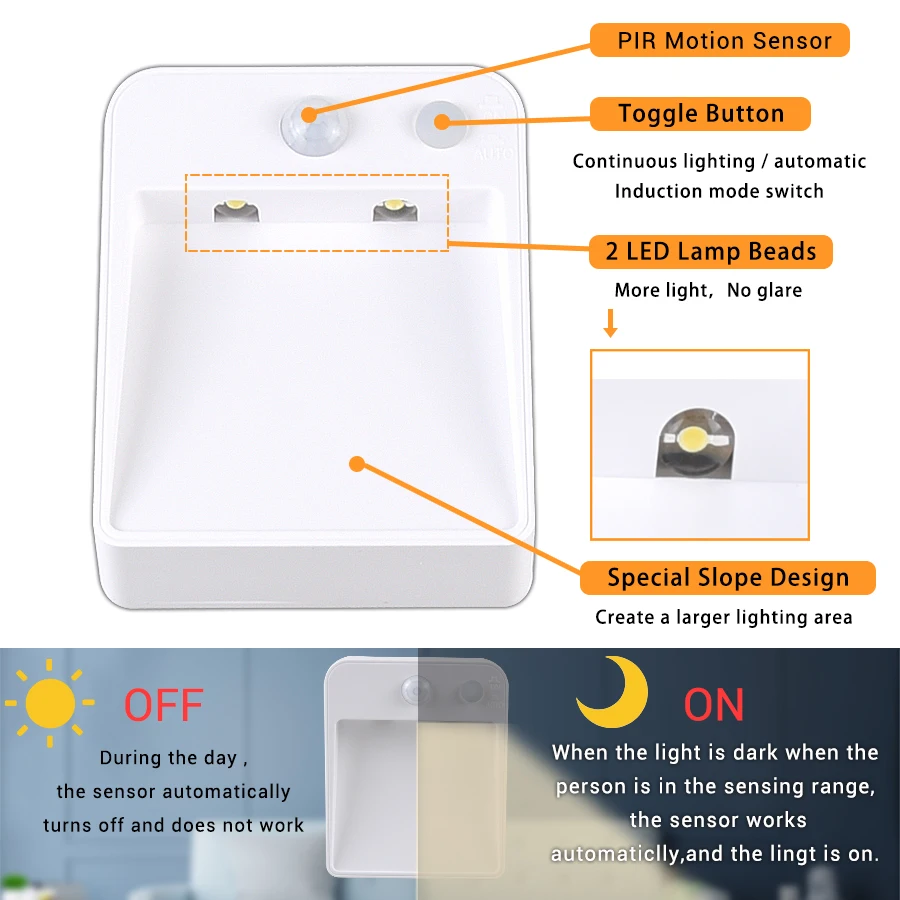 ВОПРОСЫ: В чем преимущество лампы?【Two два светодиодный светильник, оползней design】: отличается от других ночной Светильник s, этот светодиодный Ночной светильник с помощью специальной оползней дизайн, гладкая поверхность наклона могут рассеивать светильник, расширьте область освещения Ночной светильник; Два светодиодный светильник s обеспечивают больше освещения, не мигает, не бликует, он может быть применен в коридорах, лестницах, Кровати, шкаф, лестницы и т. Д.