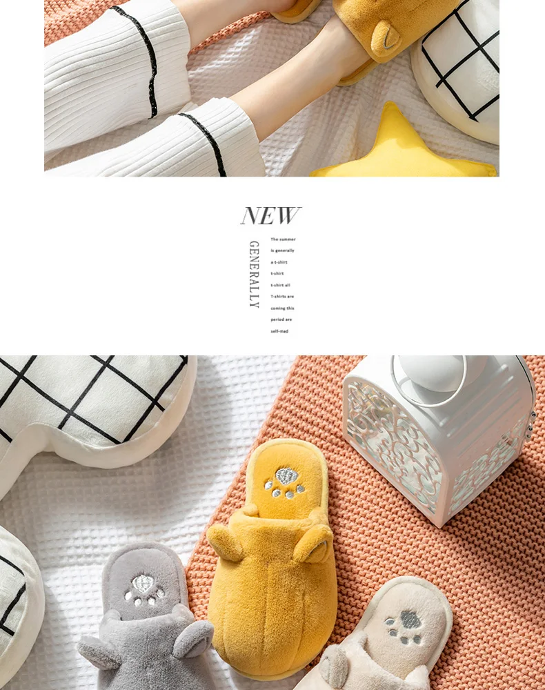 Симпатичные Зимние теплые тапочки с котом, мягкие плюшевые хлопковы...