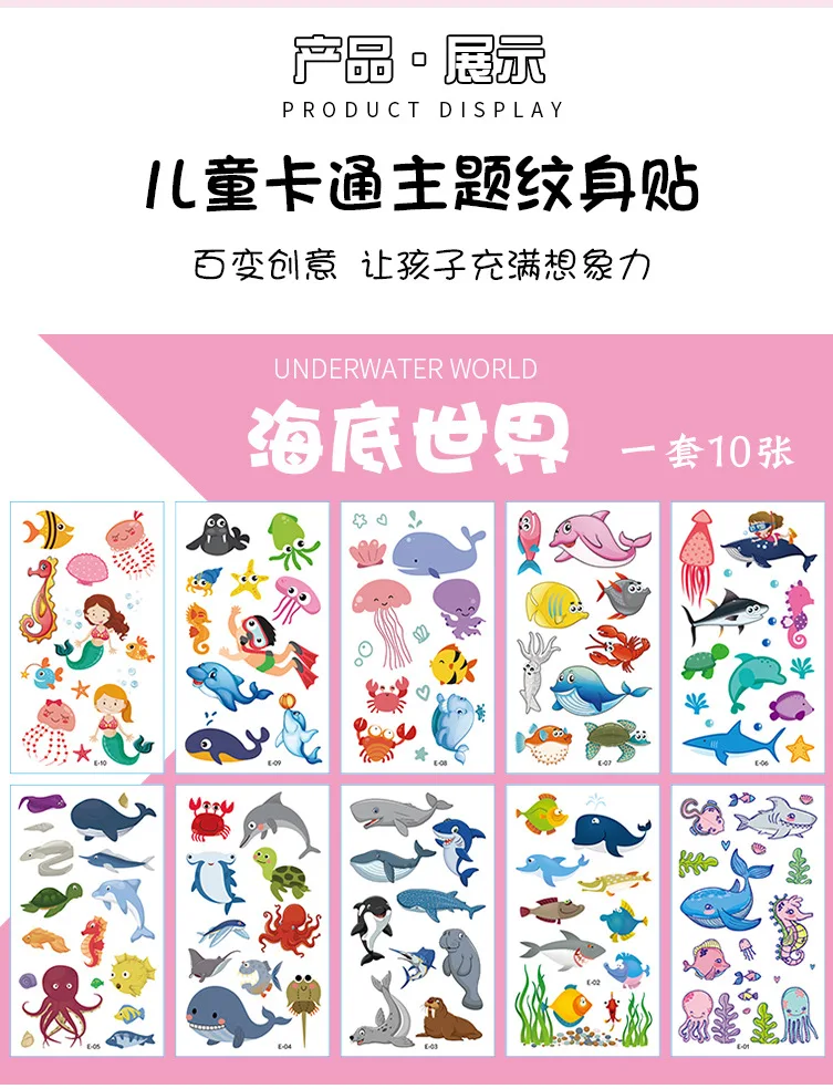 10 шт.лот Единорог временная татуировка стикер 22 стиля из водонепроницаемого материала для детей штаны с фальш-вставкой, татуировки на руках и ногах и Серебрянного цвета татуаж для детей Для мальчиков и девочек