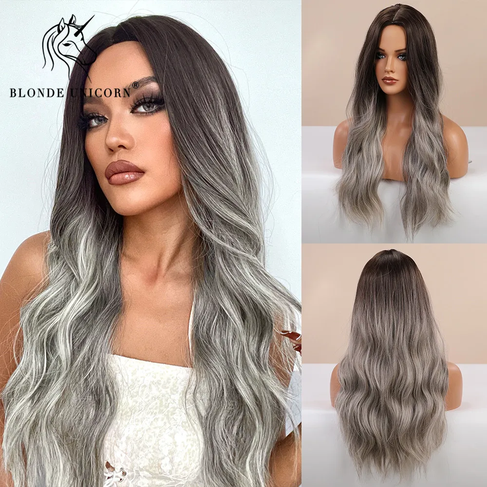 Длинные волнистые синтетические парики блонд, единорог, Омбре, коричневые парики для косплея, вечеринки, повседневные парики из термостойкого волокна для женщин