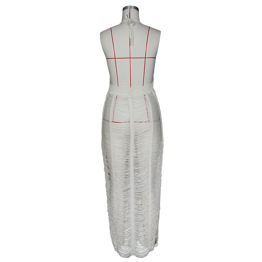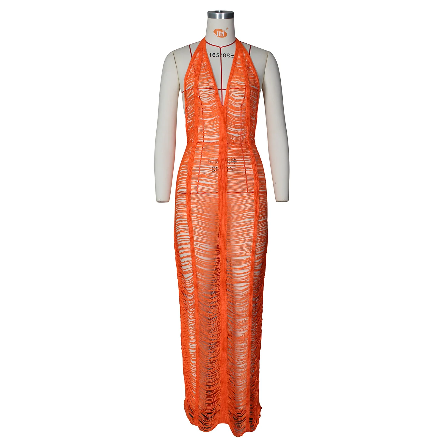 Женское вязаное пляжное платье макси, элегантное Прозрачное платье в стиле бохо с лямкой на шее и открытой спиной, лето 2022