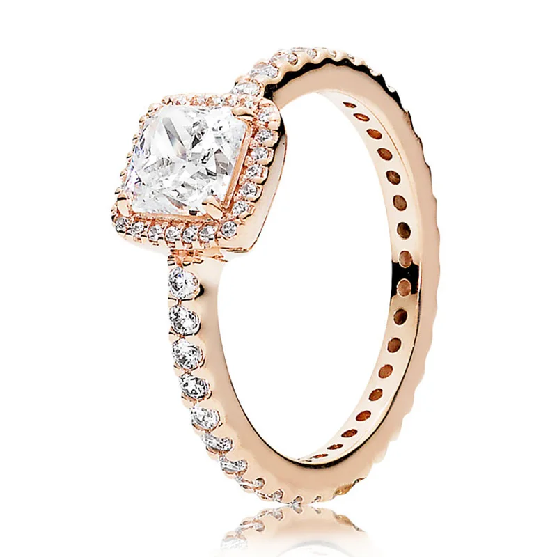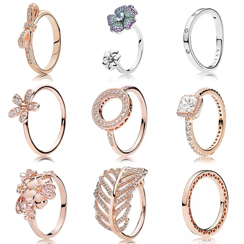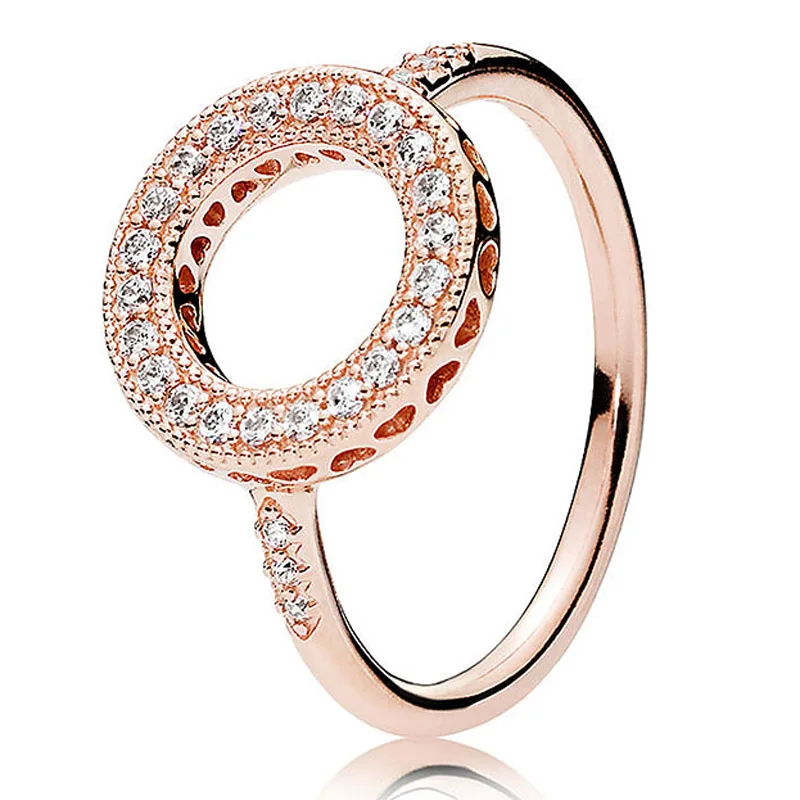 Новое блестящее серебряное кольцо со стразами, розовое золото, элег...