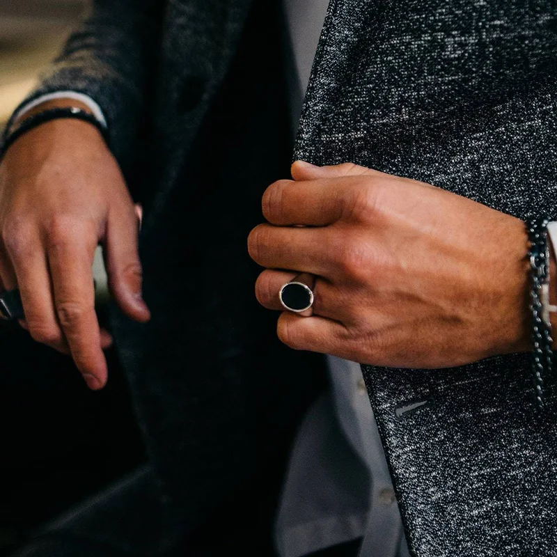 Современные мужские овальные черные простые боковые кольца с перстн...