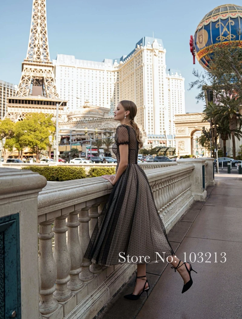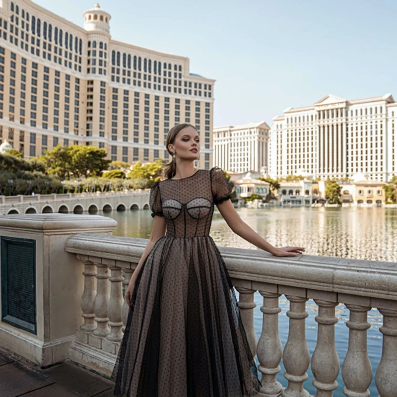 Тюлевое платье принцессы в горошек, для выпускного вечера, с короткими рукавами, прозрачное, в горошек, для официальных мероприятий, вечерняя одежда, 2021