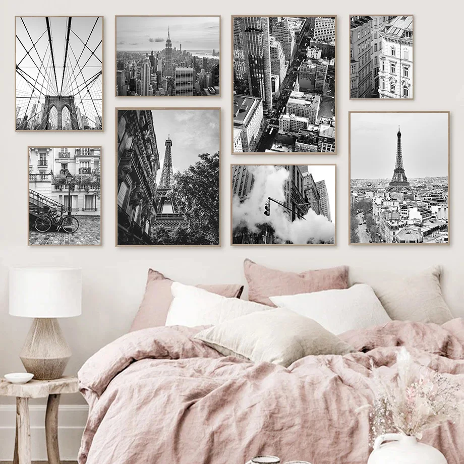 Эйфелева башня цветочный Пейзаж Настенный художественный плакат городская архитектура Холст Картина Цитата арт-Принт Скандинавская Картина декор для гостиной