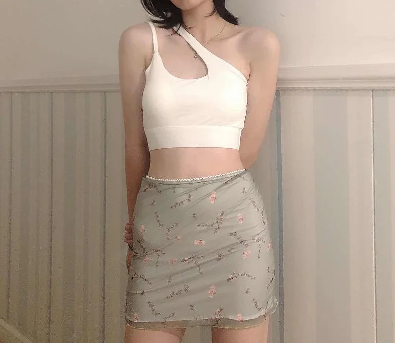 Мини-юбка Y2K с цветочным принтом, сетчатая облегающая юбка с завыш...