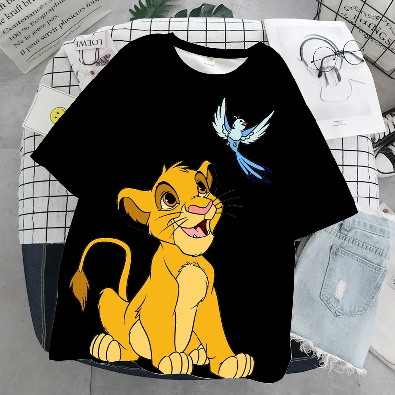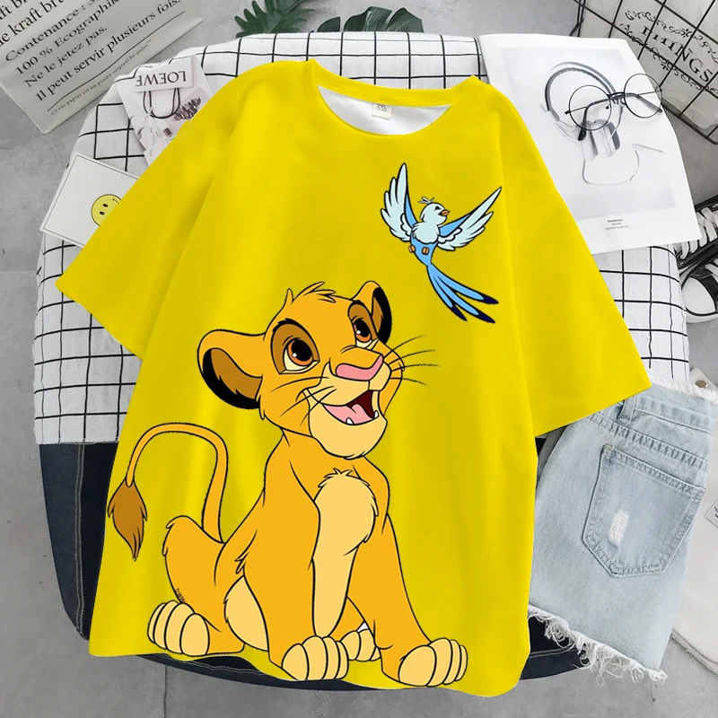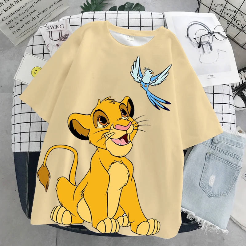 Летняя повседневная женская футболка с 3D-принтом в стиле Харадзюку, уличная одежда Ulzzang, футболка с принтом Микки, Минни, короля льва, Диснея