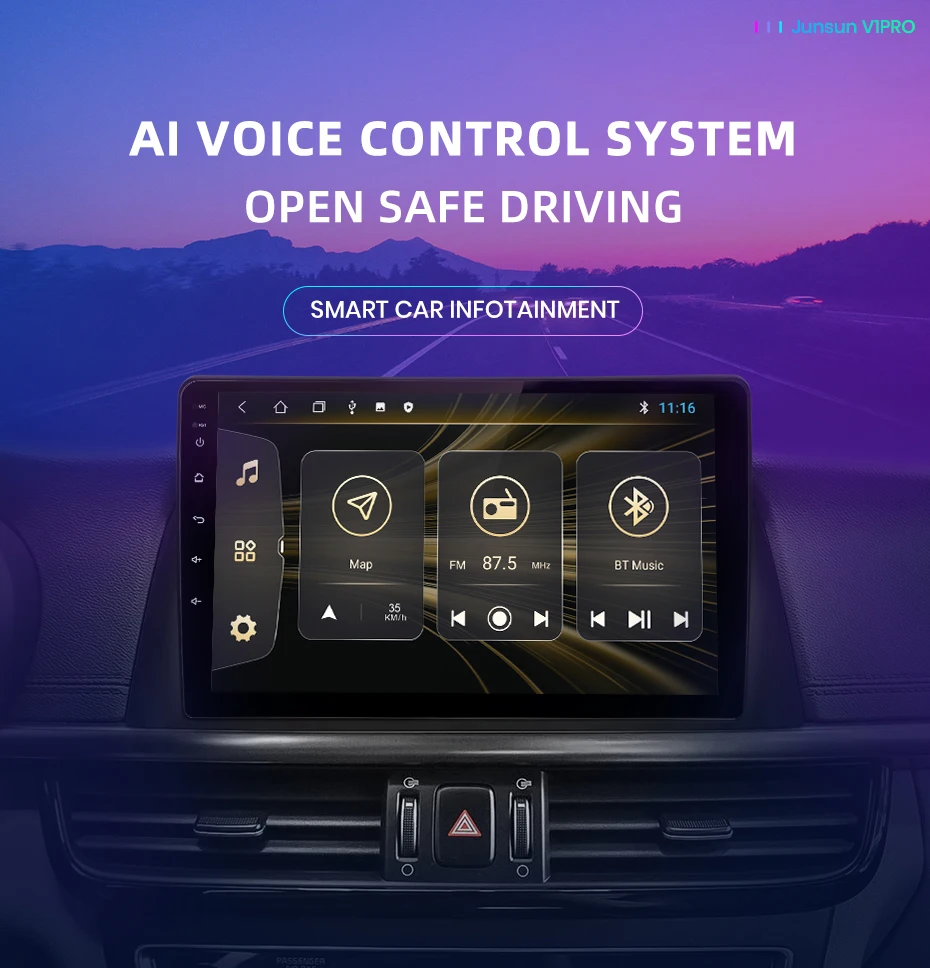 Junsun UI 3,0 новая версия, она будет работать более удобно, потому что большинство ваших ежедневных потребностей вождения будут удовлетворены этим пользовательским интерфейсом, сделать ваш интерьер автомобиля более прохладным.Пожалуйста, обратите внимание:-- Современное оборудование с местных складов в Испании, Польше и России до сих пор Junsun 2,0 UI. Если вам нужно обновить версию Junsun UI 3,0 после покупки, пожалуйста, свяжитесь с нами, чтобы обновить прошивку.-Устройство, отправленное из Китая,-версия Junsun UI 3,0-О цвете темы, V1 только один цвет, и V1 Pro имеет 4 вида цветов на выбор