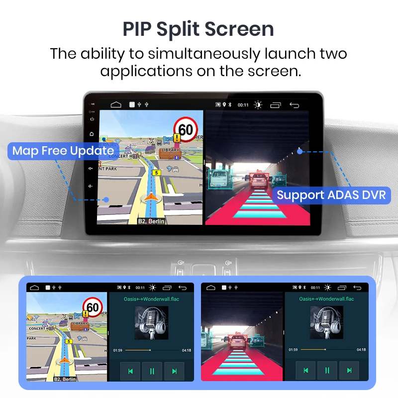 Вы можете использовать навигацию и другие приложения одновременно, такие как прослушивание музыки или включение функций ADAS и т. Д.