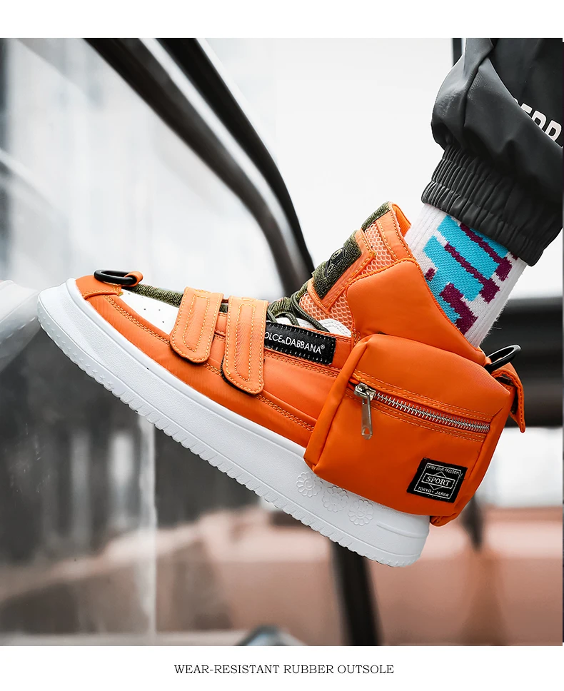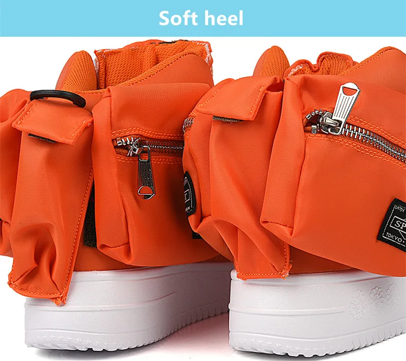 Оранжевая обувь с высоким берцем и карманами; Мужская Дизайнерская обувь; Модная удобная обувь на бретелях; Кроссовки для мужчин; Уличная обувь на платформе; Кроссовки для пар