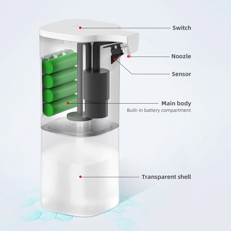1, автоматическое определение из пузыря: Инфракрасный внедрение технологии распознавания освещения окружающей среды: дневной и ночной режим супер быстрый зондирования время составляет всего 0,25 s, что делает жизнь удобнее. Когда вы достигнете зоны обнаружения (расстояние срабатывания 0-5 см), он автоматически испускает плотные пузыри. Мягкие пузырьки проникают глубоко в поры и очищают руки.2. Энергосбережение и охрана окружающей среды: новый способ экономии, инновационная технология насоса-пузыря преобразует жидкости в пузырьки и уменьшает использование на 50%. Микро высокая эффективность двигателя, низкое энергопотребление, тихий.3, простой дизайн: классический простой дизайн, это изящный и модный предмет для вашего дома. Бутылка для средства для мытья рук изготовлена из высококачественного матового материала, чистая и чистая, чтобы проверить использование в любое время.4, широко используется: IPX3 Водонепроницаемый рейтинг, легко справляется с окружающей средой водяного тумана, водяного пара и капель воды в раковине, может быть легко интегрирован в различные среды, такие как ванная комната и кухня. Обеспечить пользователям высокое качество, элегантный опыт мытья рук.