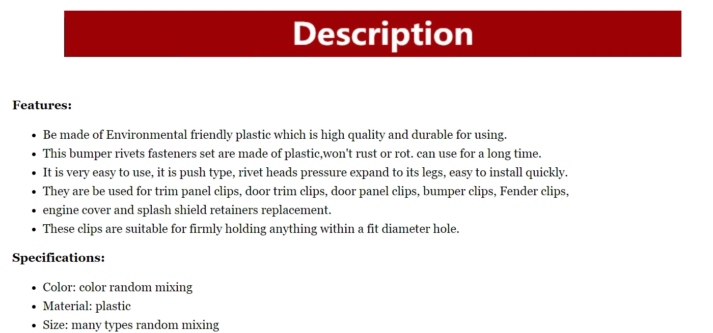 Item TypeFastener & Clip