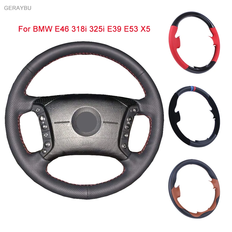 GERAYBU изготовленный на заказ DIY черный кожаный чехол рулевого колеса автомобиля ручной работы для BMW E46 318i 325i E39 E53 X5 дышащий износостойкий