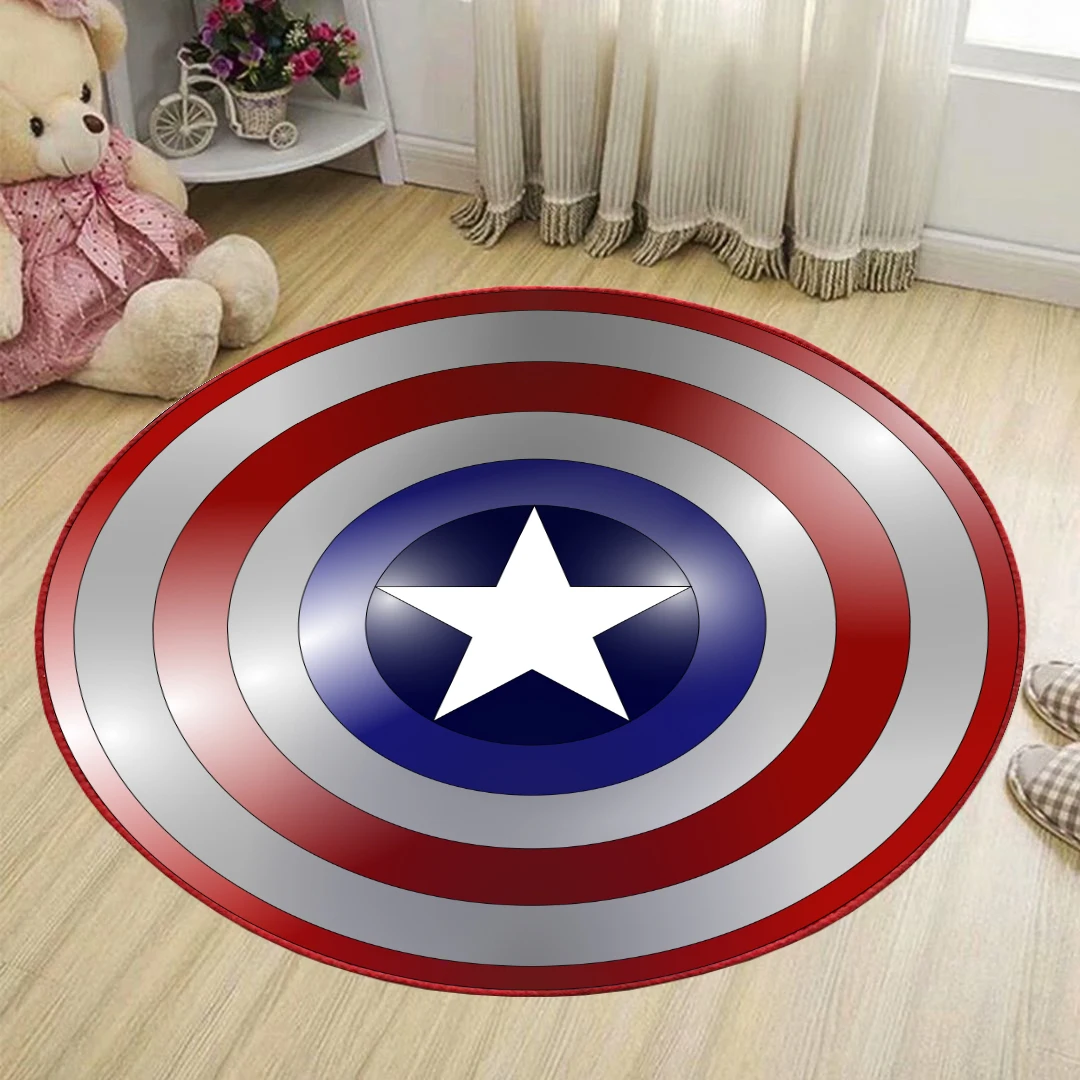 Детский игровой коврик Капитан Америка, декор для спальни, гостиной, пятиконечная звезда, кристалл, бархат, нескользящий круглый ковер, подарок для взрослых и детей