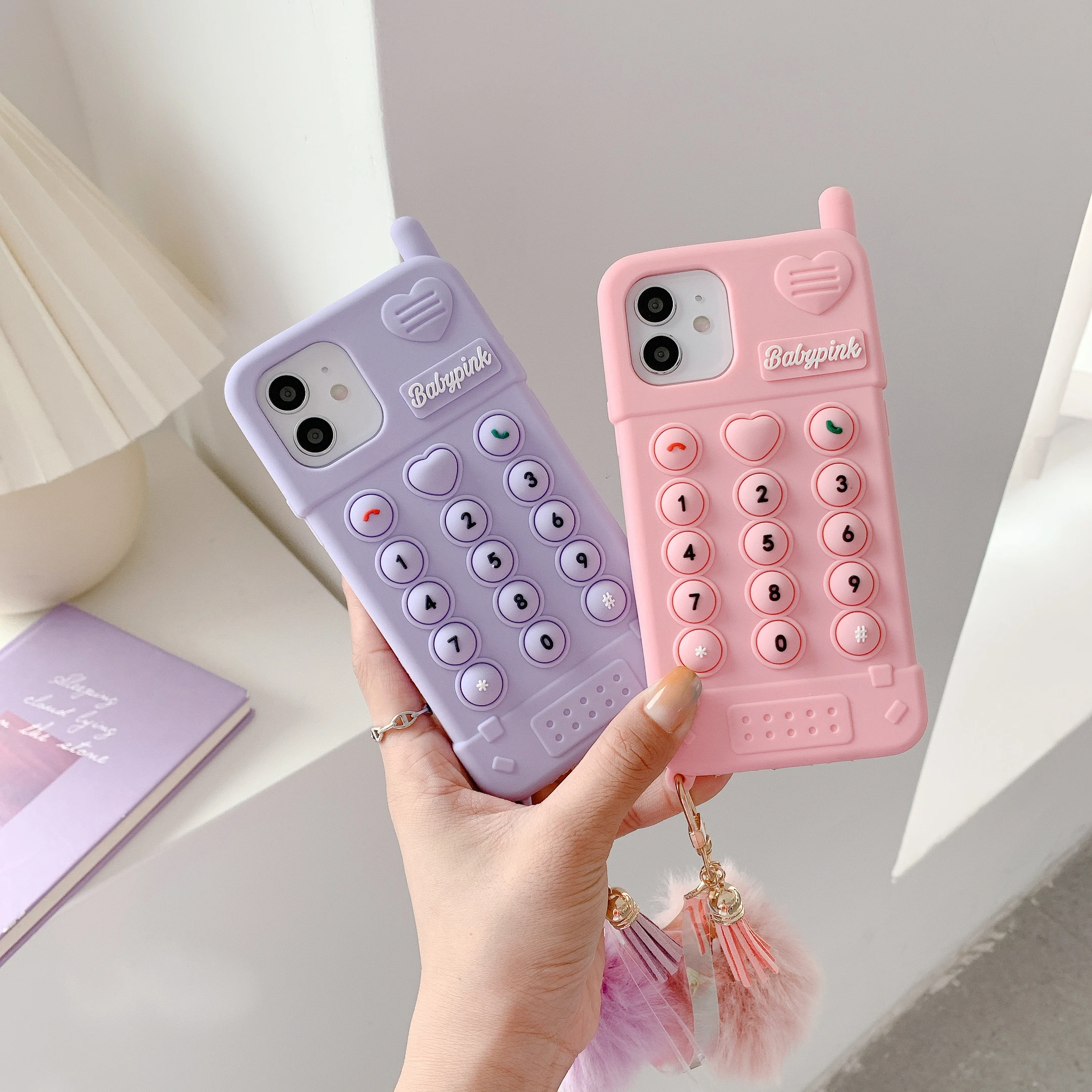 Силиконовый декомпрессионный чехол для телефона для маленьких девочек с подвеской в виде шара для волос, подходит для iphone7 8Plus X Xsmax Xr 11 12Promax 12mini