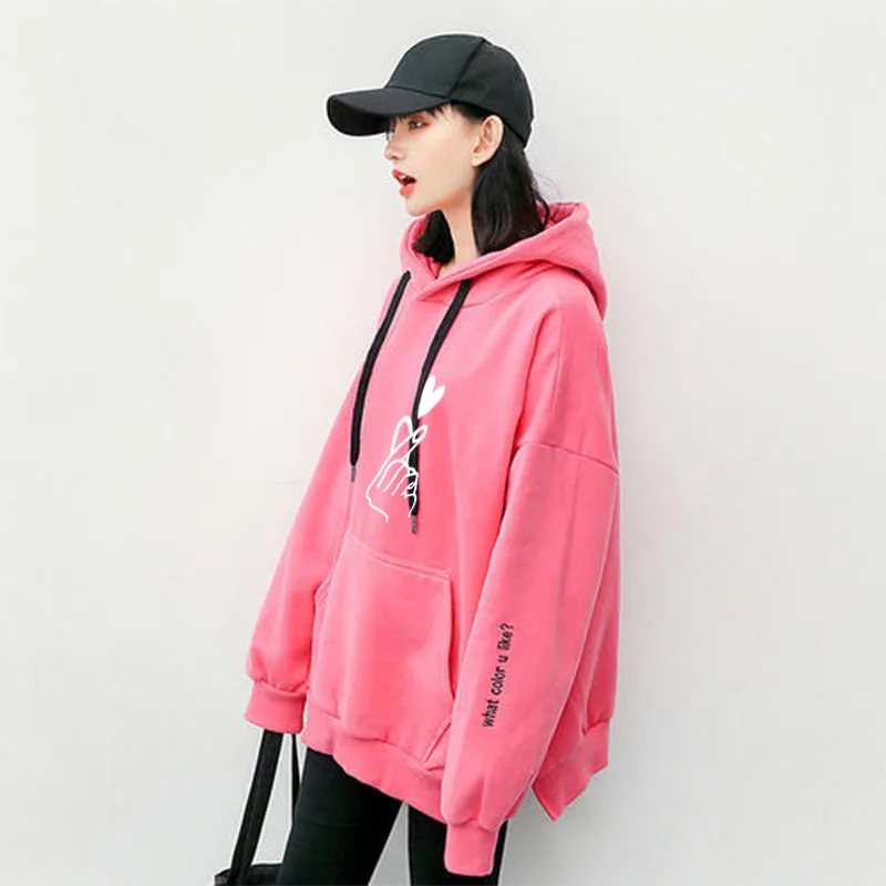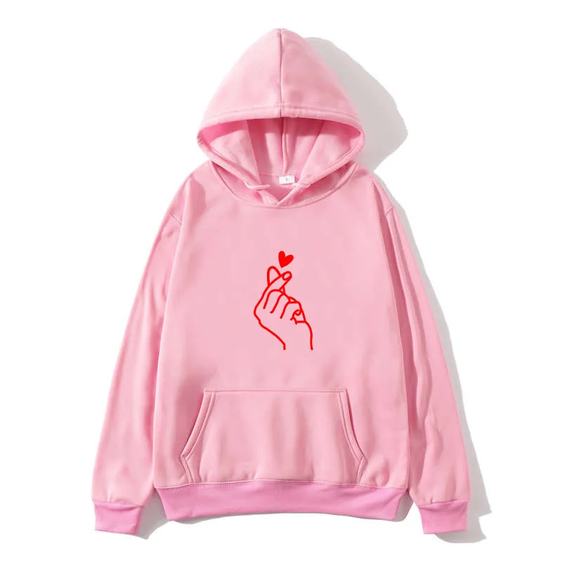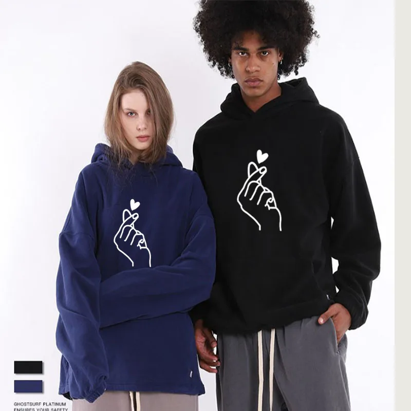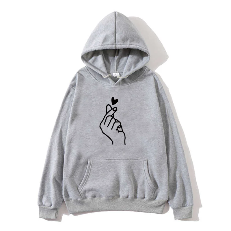 Новинка, толстовка с капюшоном и принтом сердечек на пальцах для пар, осеньзима, свободная толстовка с капюшоном, корейский пуловер с длинным рукавом и карманами, толстовка бесплатно