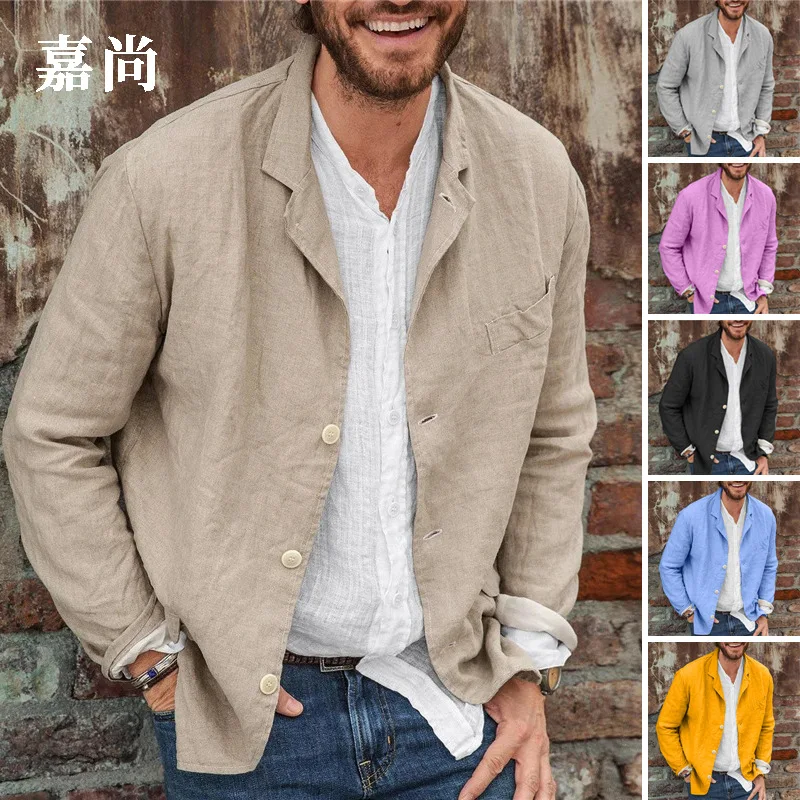 Мужской повседневный пиджак, из хлопка и льна, свободного покроя, на весну и осень, 2021