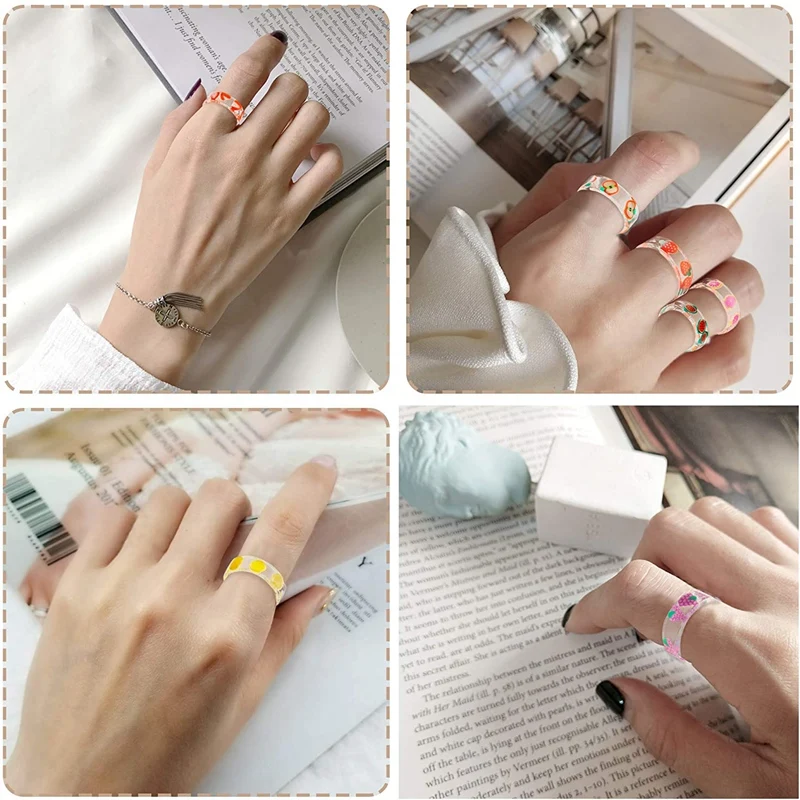 8 шт фрукты из смолы набор колец милый прозрачный пластик для колец из смолы ювелирные изделия для женщин подростков девочек инди-эстетика