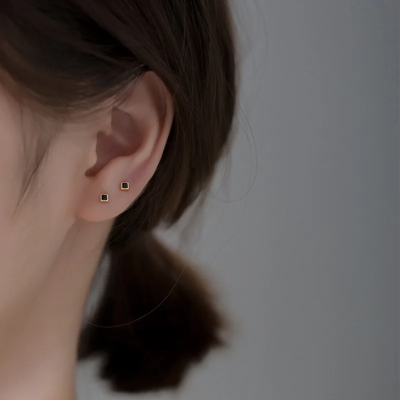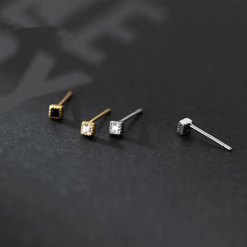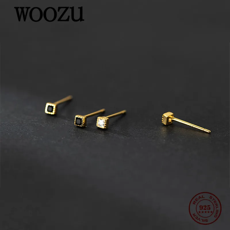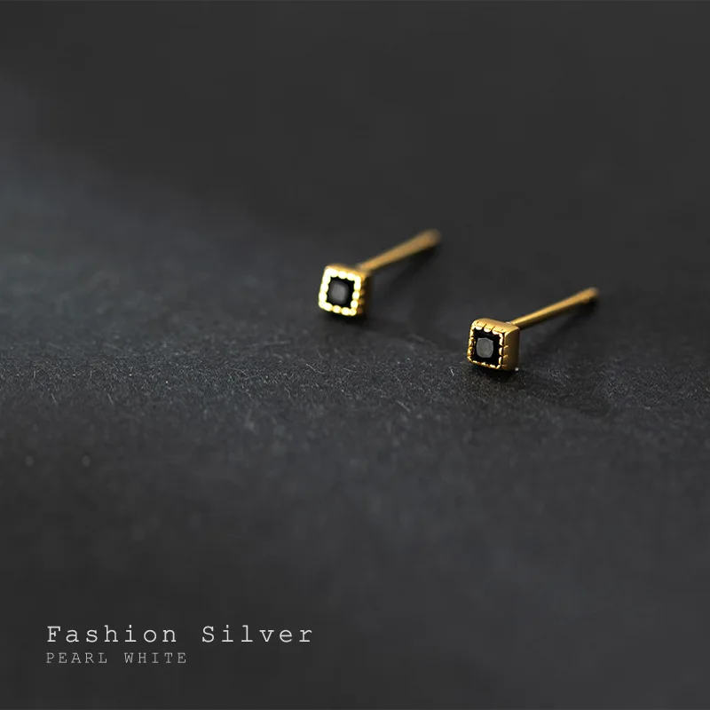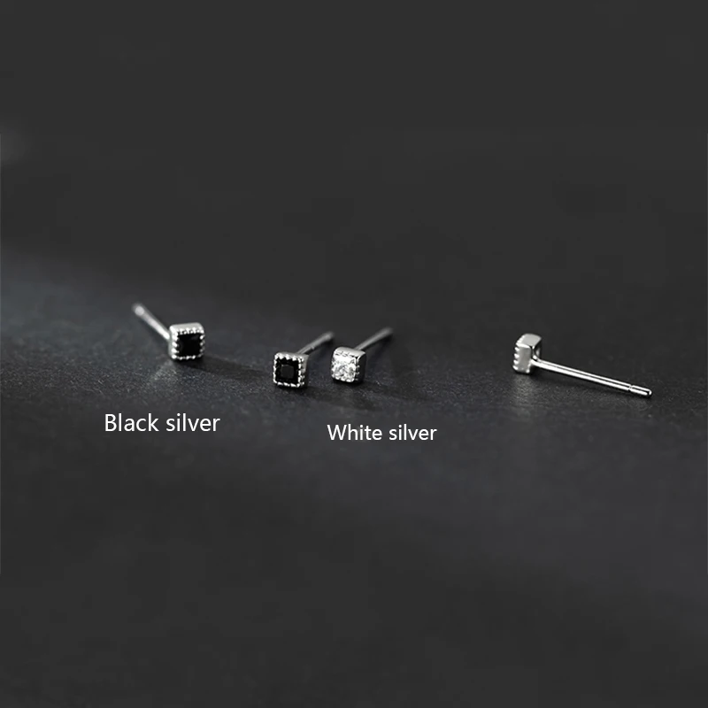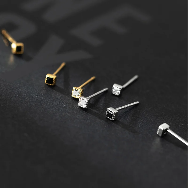 Серьги-гвоздики Женские квадратные из серебра 925 пробы с черным цирконием, ювелирные изделия в стиле готик-панк