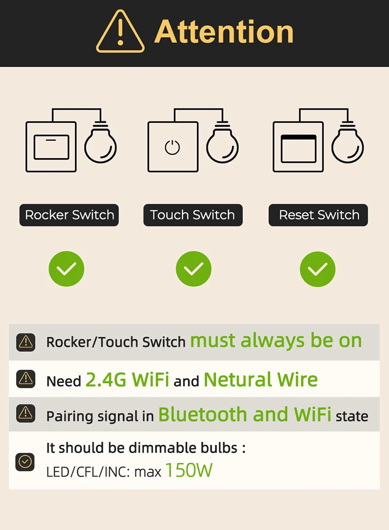 1. Этот продукт поддерживает только лампочки с регулировкой силы света (SCR), не поддерживает bluetooth лампы и обычные лампы
