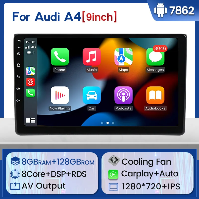 2 Din Android 11 8 ГБ + 128 ГБ автомобильный радиоприемник мультимедийный видеоплеер GPS-навигация для Audi A4 B6 B7 S4 B7 B6 RS4 B7 IPS экран DSP 4G