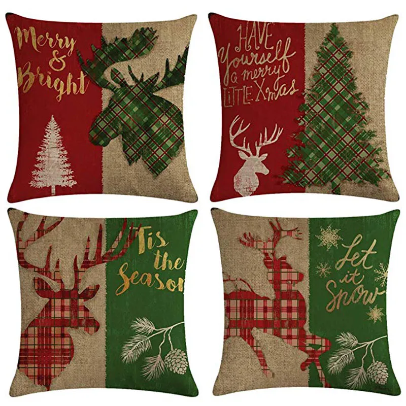 Рождественская декоративная наволочка в стиле ретро с принтом Санта-Клауса оленя Рождественский подарок наволочка Снежинка диванная подушка