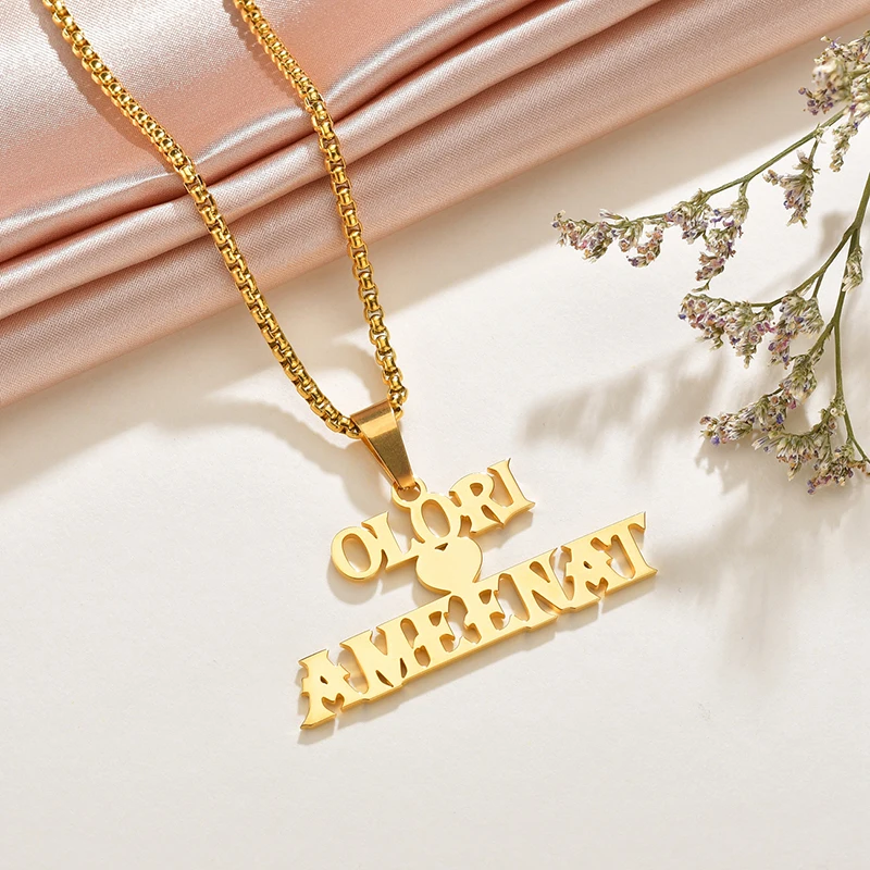 Ожерелье с именем на заказ, подвеска из нержавеющей стали с сердцем...