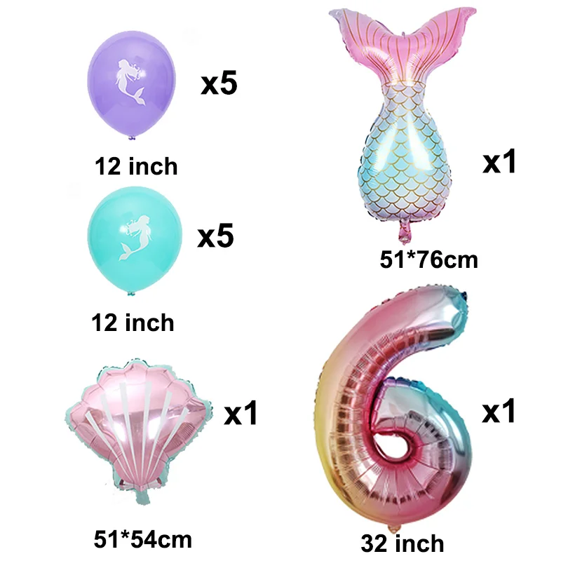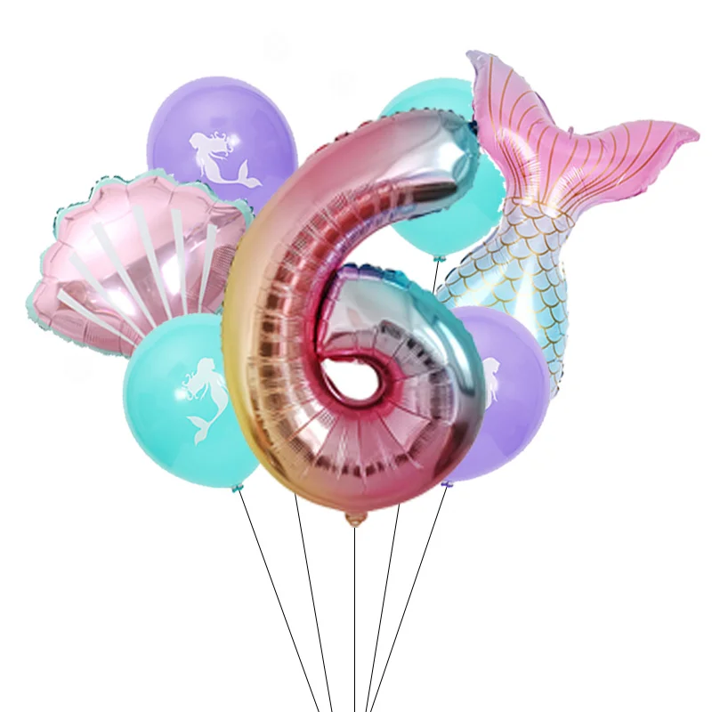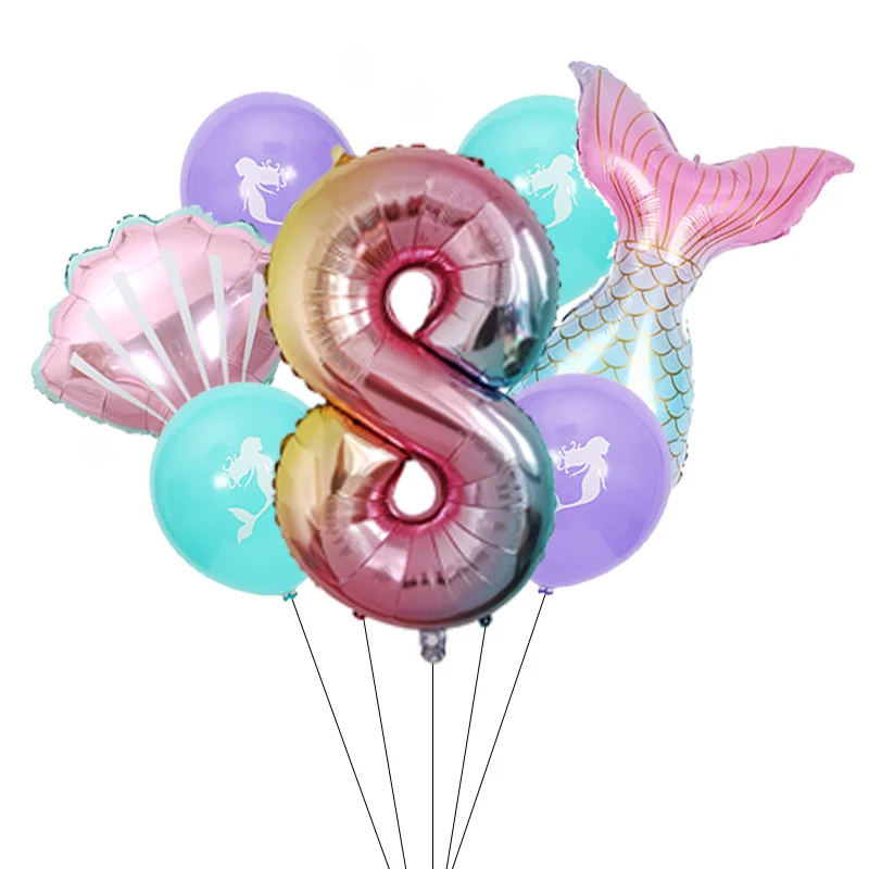 Шарики в виде цифр для дня рождения с хвостом русалки, 13 шт., 1, 2, 3, 4, 5, 6, 7, 8, 9, для односпального дня рождения девочек, декор для морвечерние, товары для дня рождения