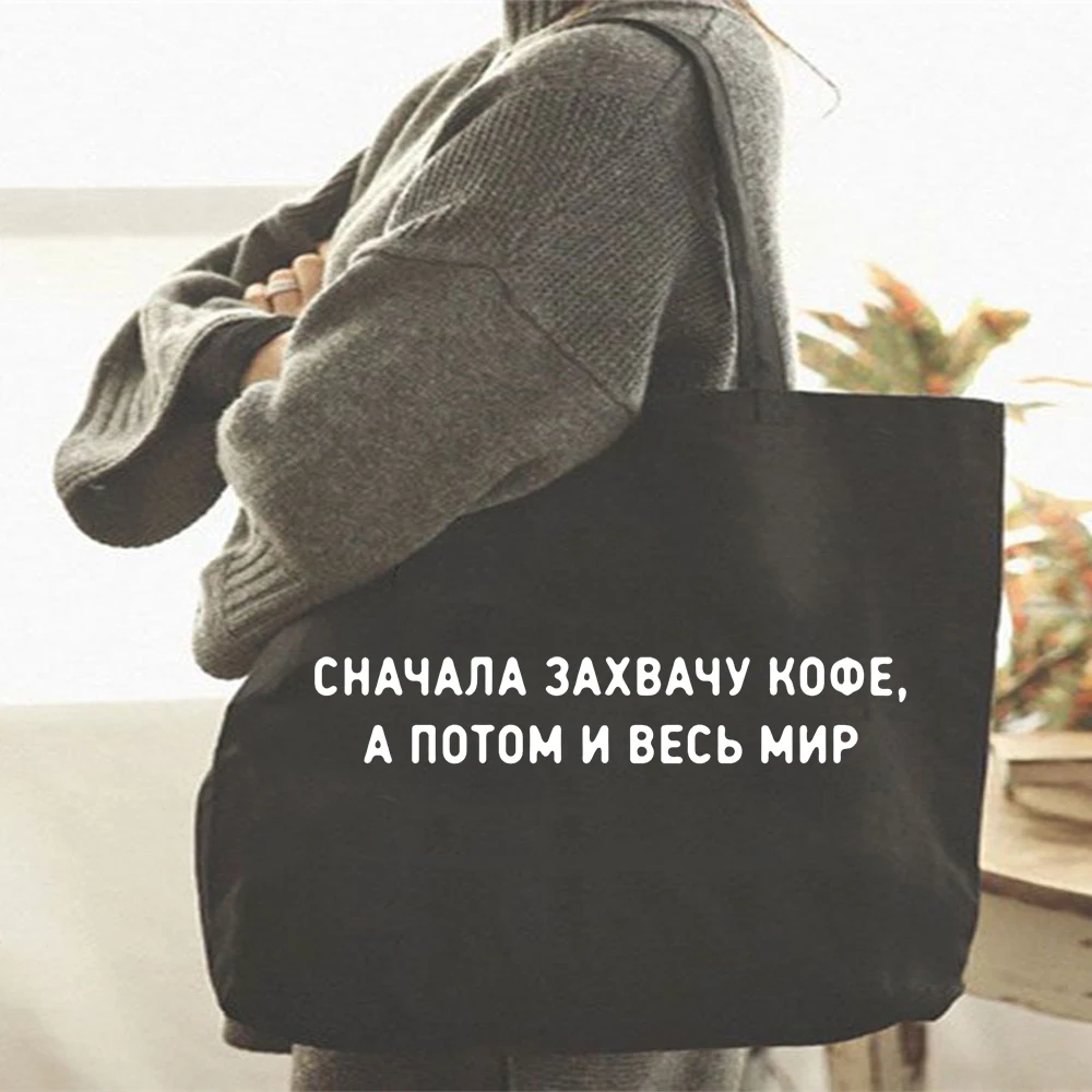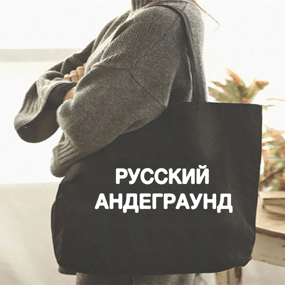Сумка-тоут многоразовая в стиле Харадзюку, с надписью на русском языке