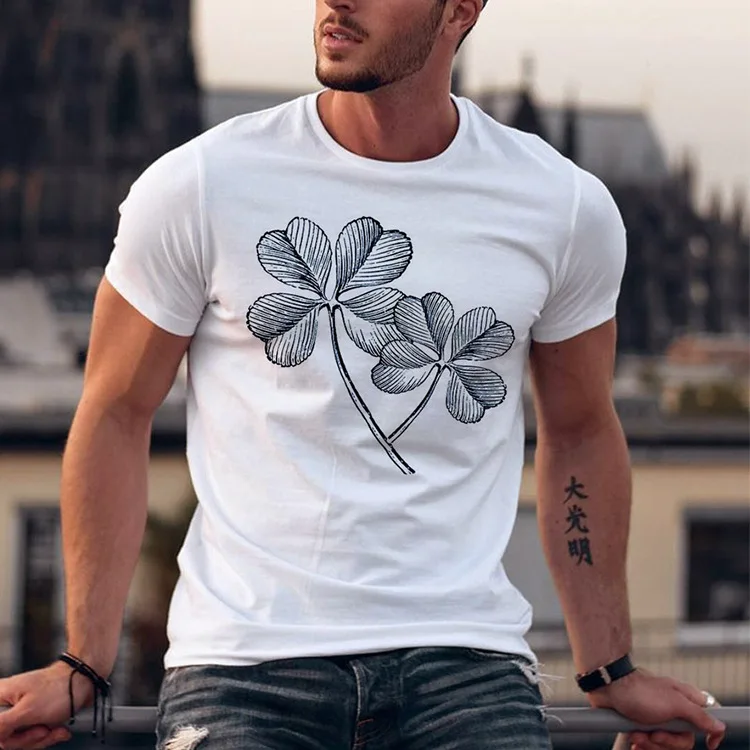 Романтичной розой австралийская хлопковая футболка с коротким рукавом, одежда для мужчин; Летние 3D-printed Lucky 3 листья девушка супер большой футболка Удобная дышащая Повседневная рубашка