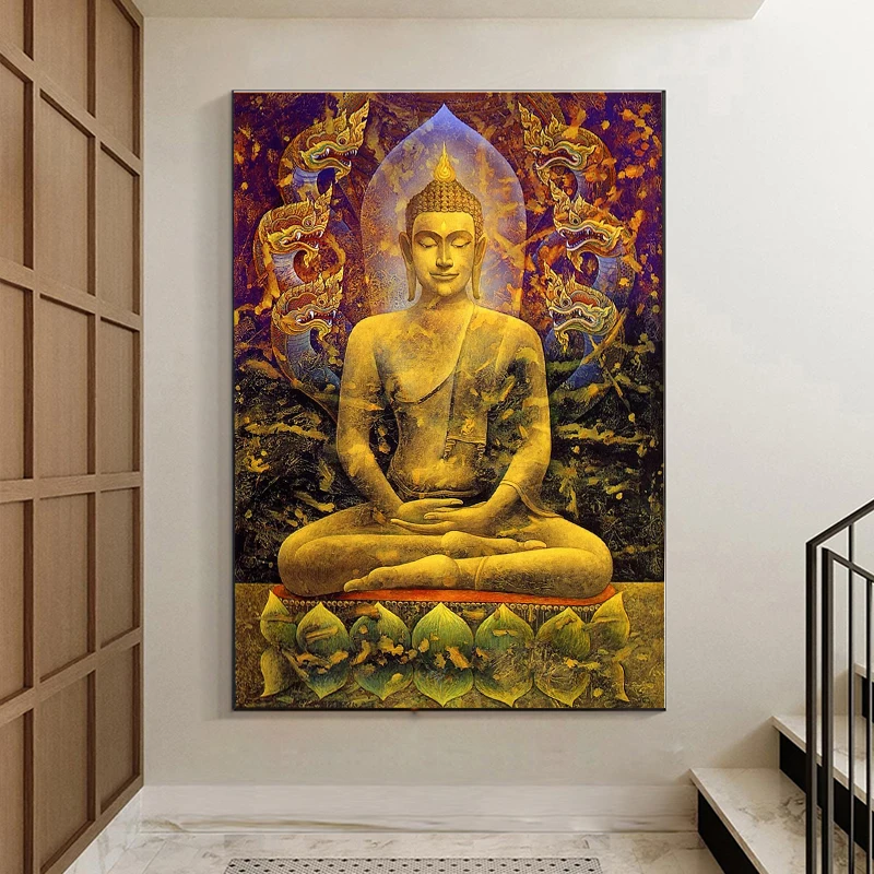 Религиозная Будда Металлическая Статуя холст живопись абстрактная ф...