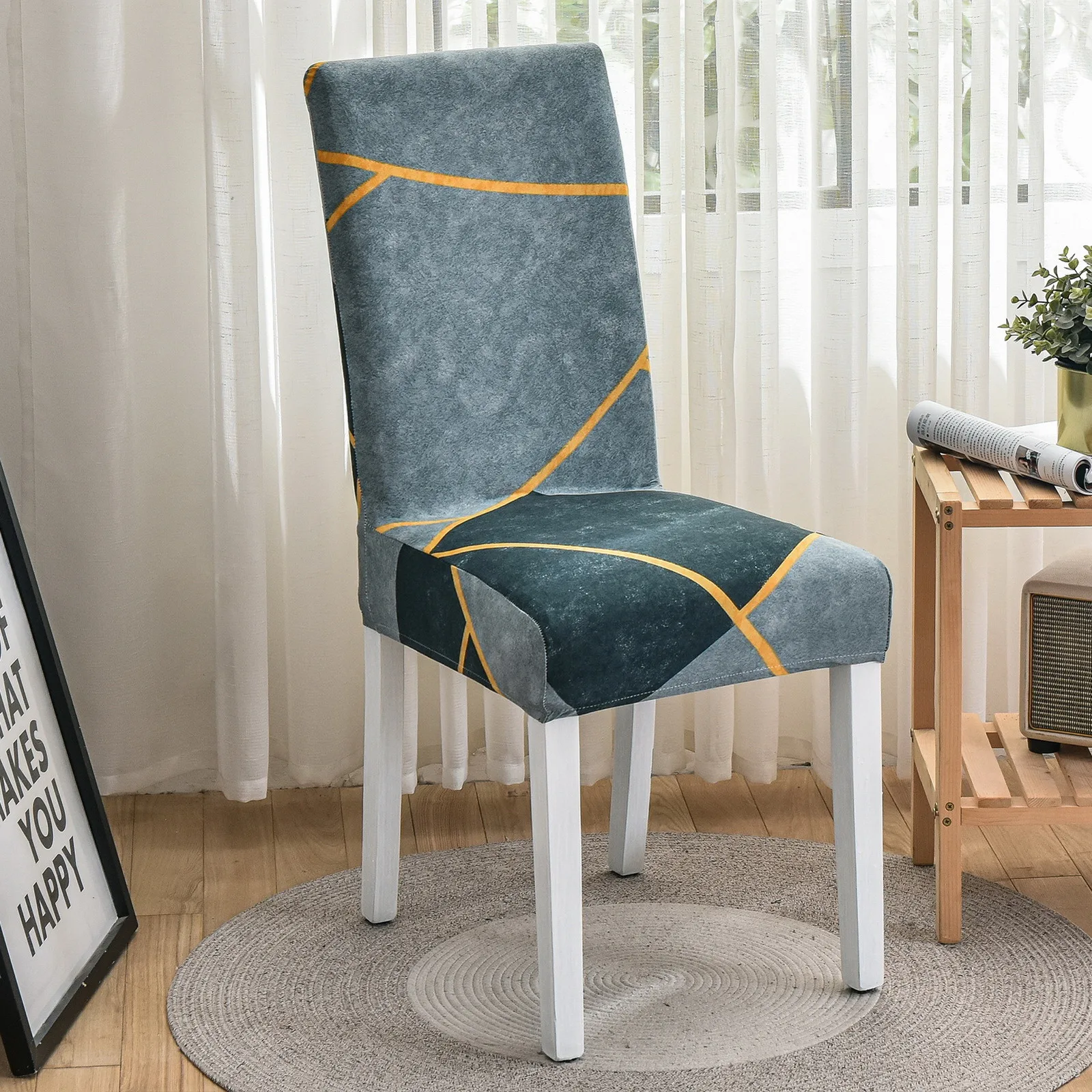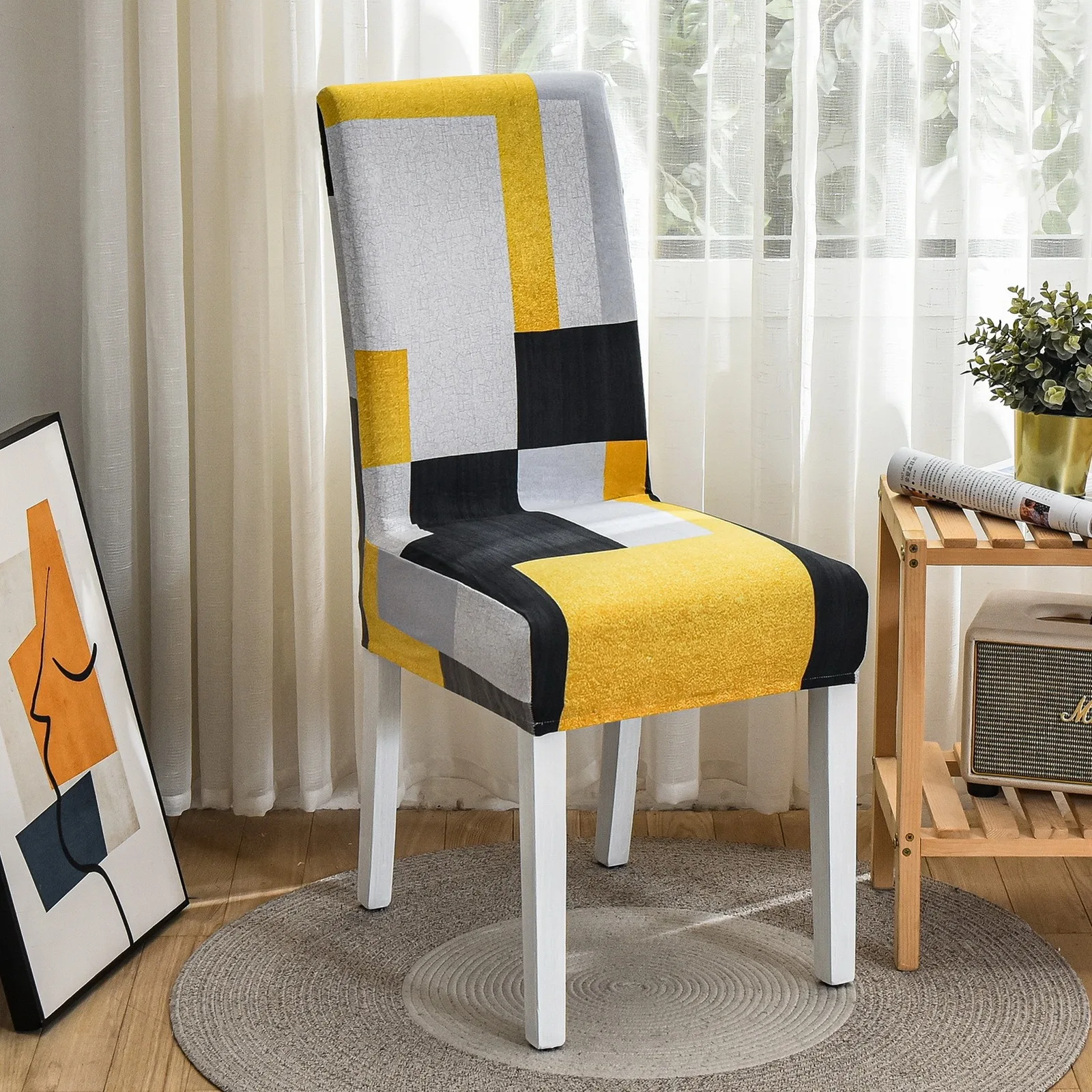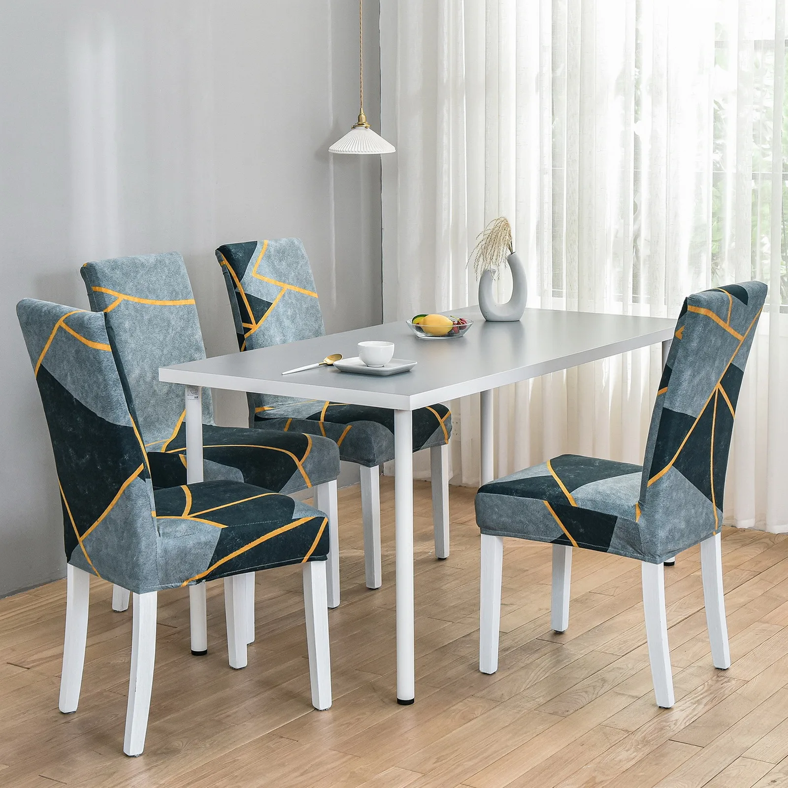 Чехлы на кресла стрейч с геометрическим принтом, защита стула для с...