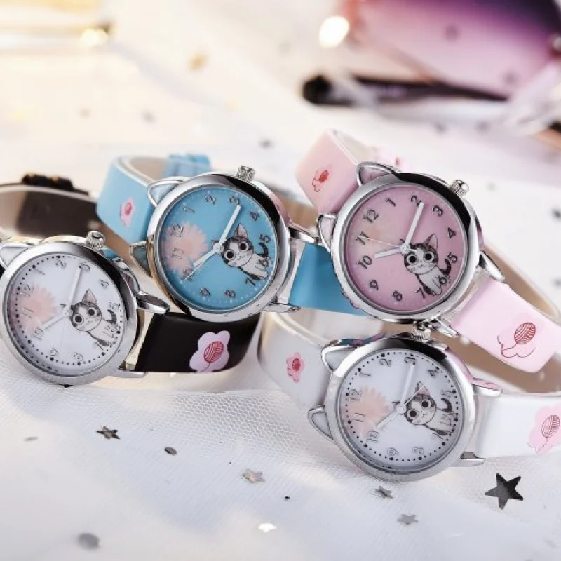 Часы Детские с милым рисунком кошки, кварцевые Мультяшные для девочек, студенческие электронные, подарок для детей