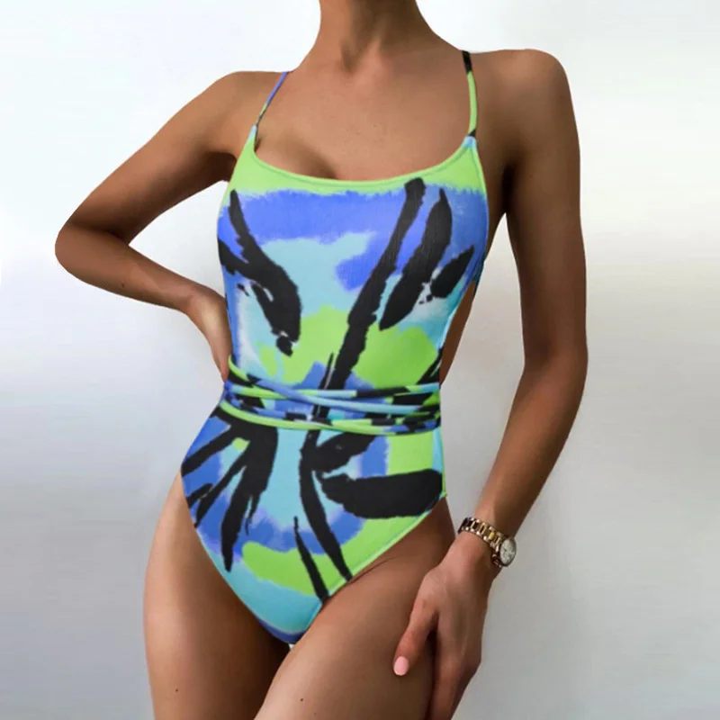 Женские ребристые комбинезоны Yitimuceng, сексуальный купальник с принтом, пляжная одежда, бикини, Бандажное боди с открытой спиной, лето 2021, Новинка