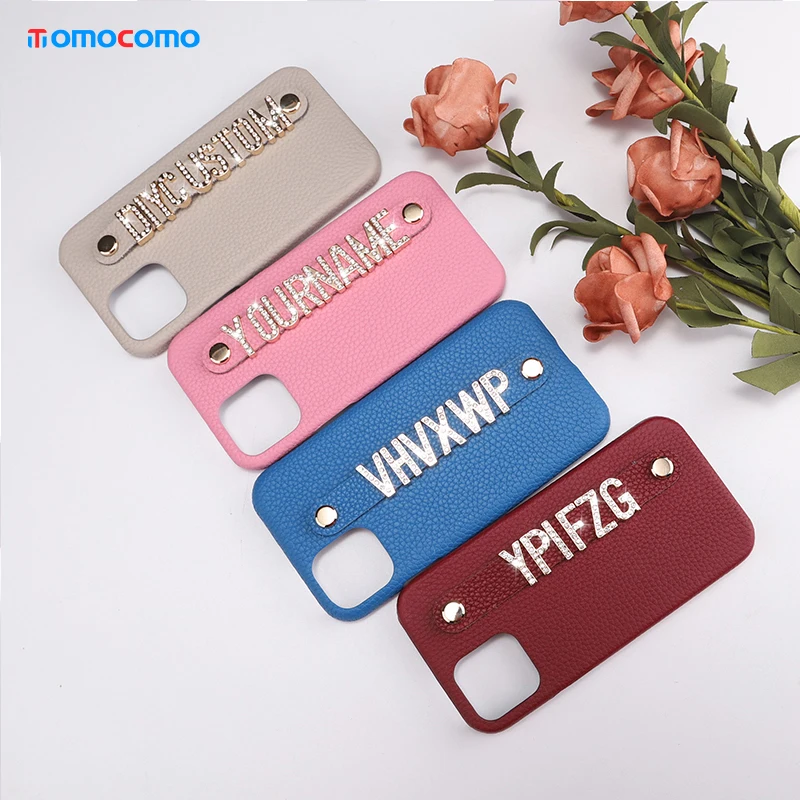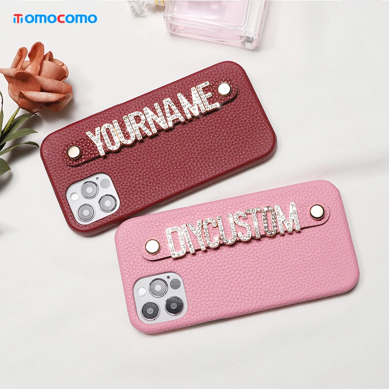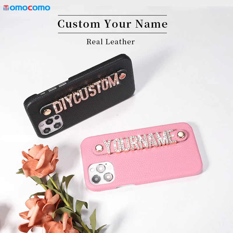 Чехол для телефона из натуральной воловьей кожи с именем под заказ для iPhone 11, 12, 13 Pro, Mini Max, X, XR, XS, 7, 8Plus, металлический чехол с алмазными буквами, оболочка