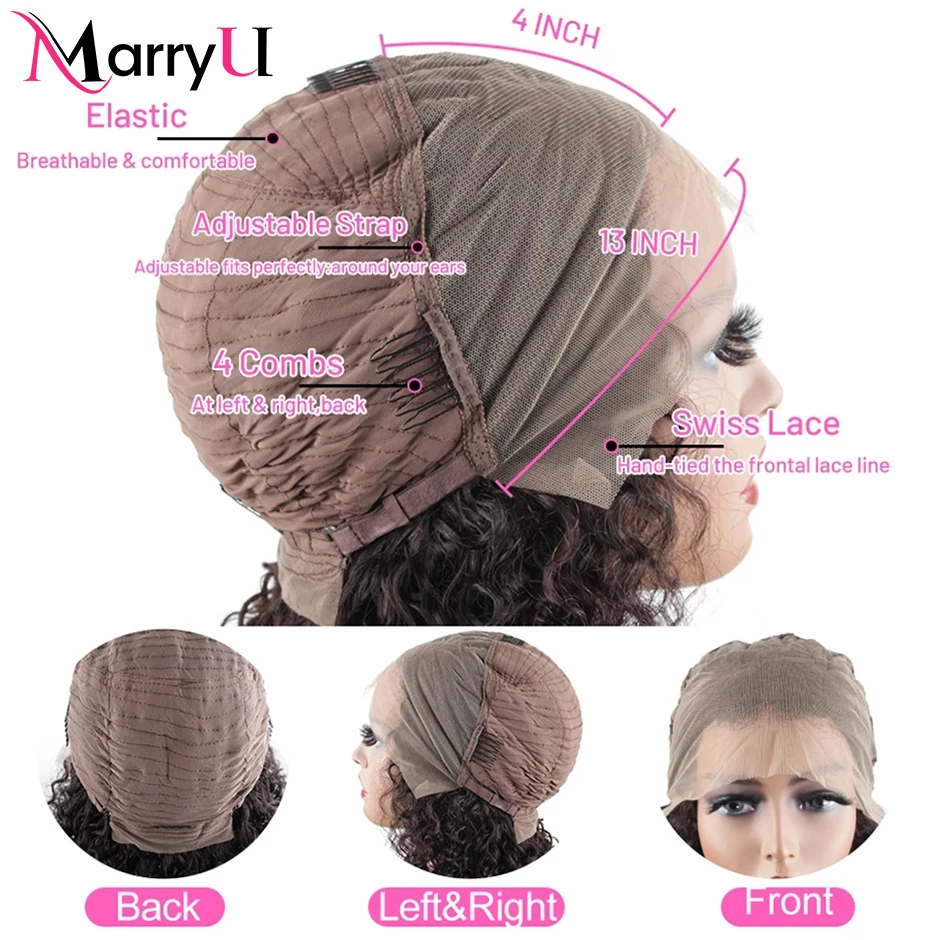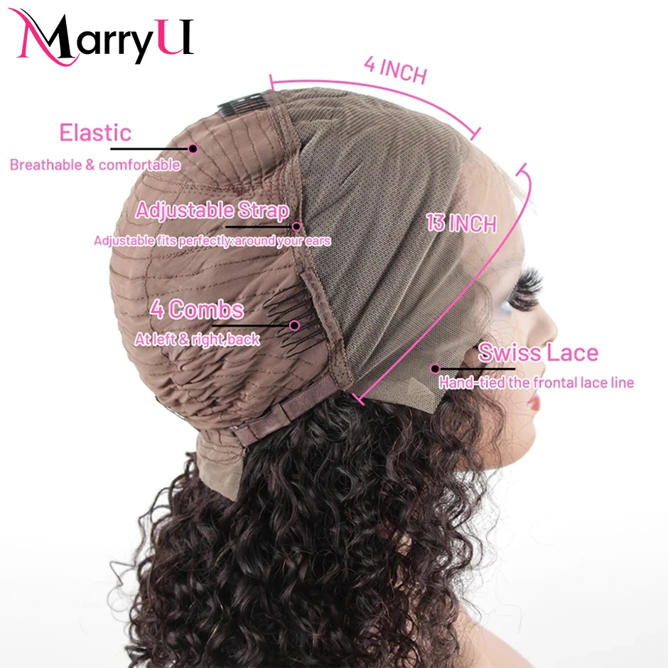 Парик ISEE из натуральных бразильских волос, плотность 180%, 4X4