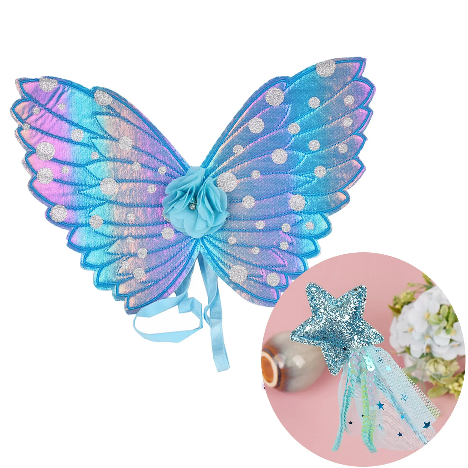 Симпатичные Детские костюмы реквизит для выступлений градиентный цвет Бабочка Принцесса крылья Ангела сказочная палочка детское платье играть в игрушки