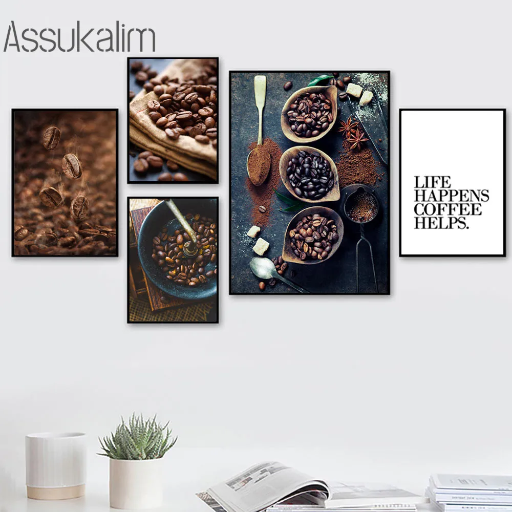 Скандинавская Картина на холсте Кофейные зерна плакат кофе домик настенный художественный принт современный реалист настенные картины для кофейни украшение