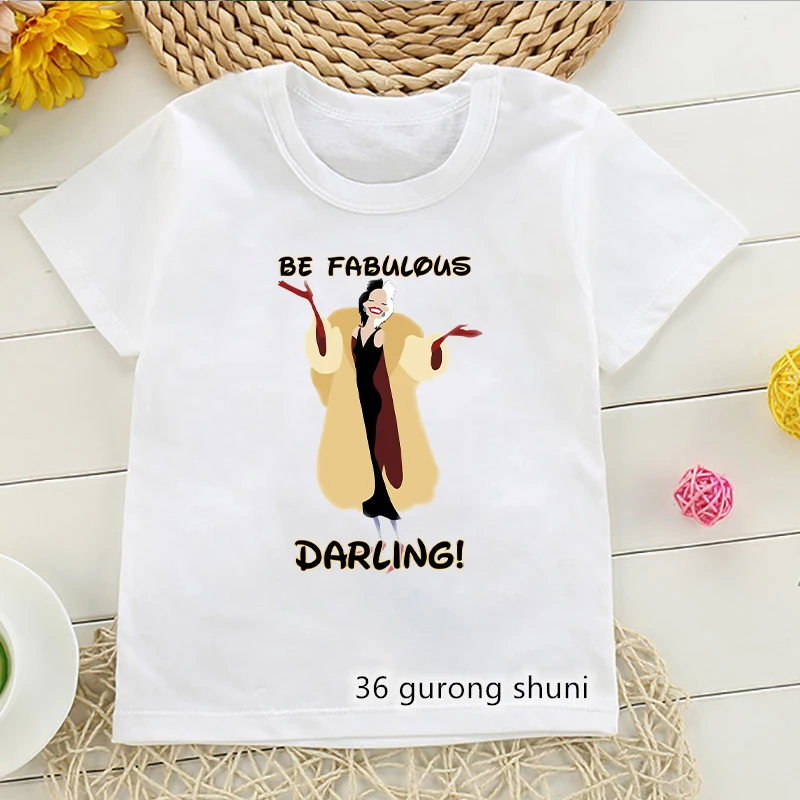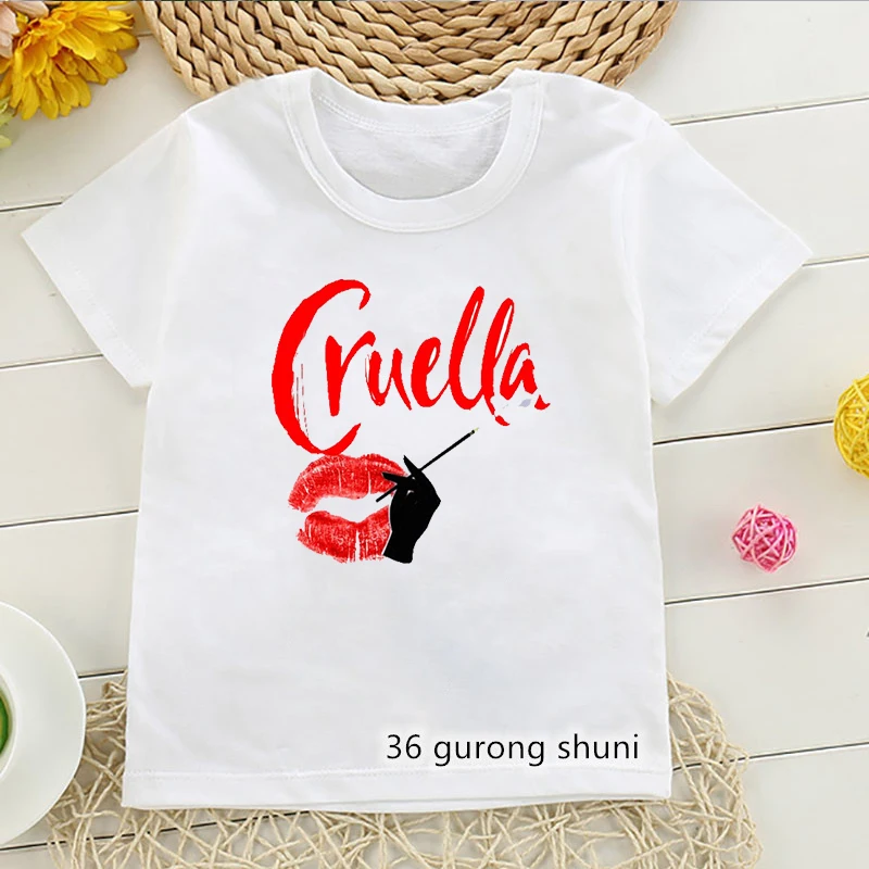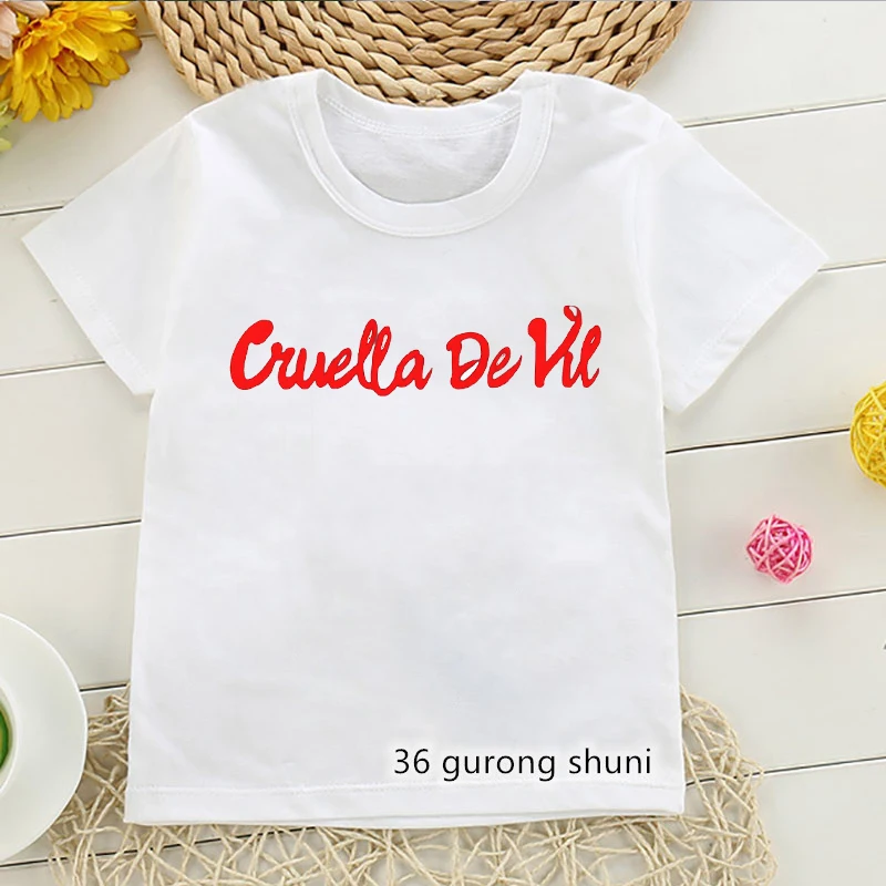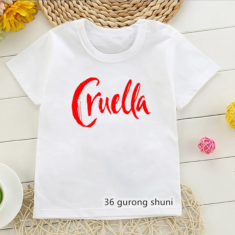 Забавные футболки для девочек, графическая футболка Cruella De Vil Dogs, детская одежда, модная забавная мультяшная футболка, летние топы