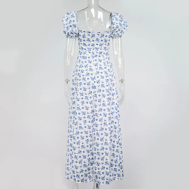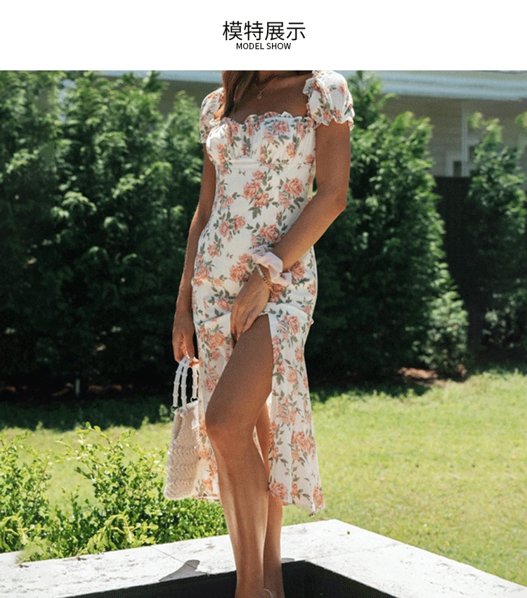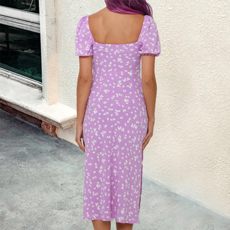Женское платье-миди с высоким разрезом, цветочным принтом и рукавами-фонариками, на лето, 2021