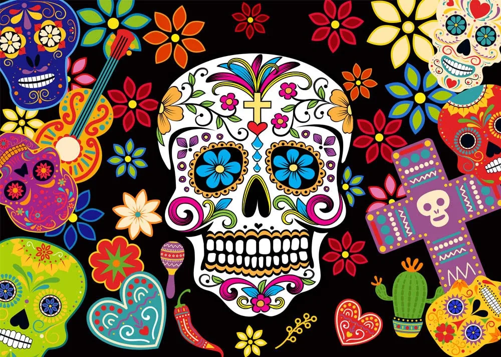 День мертвых фон Мексиканская фиеста Сахар Череп цветы фотография Фон День мертвых платье фото студия