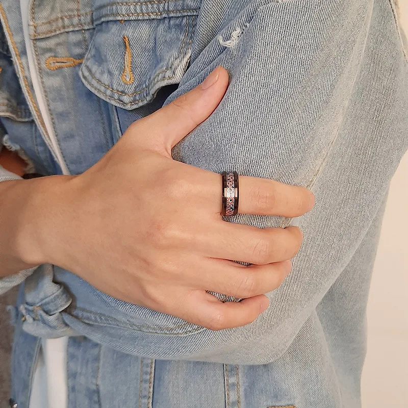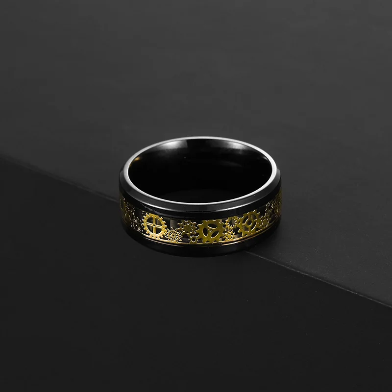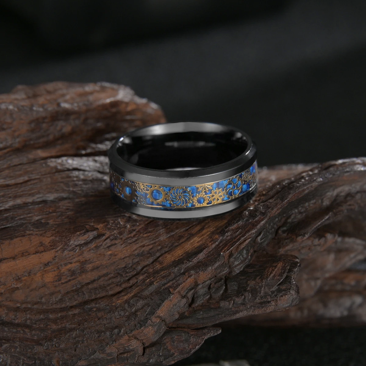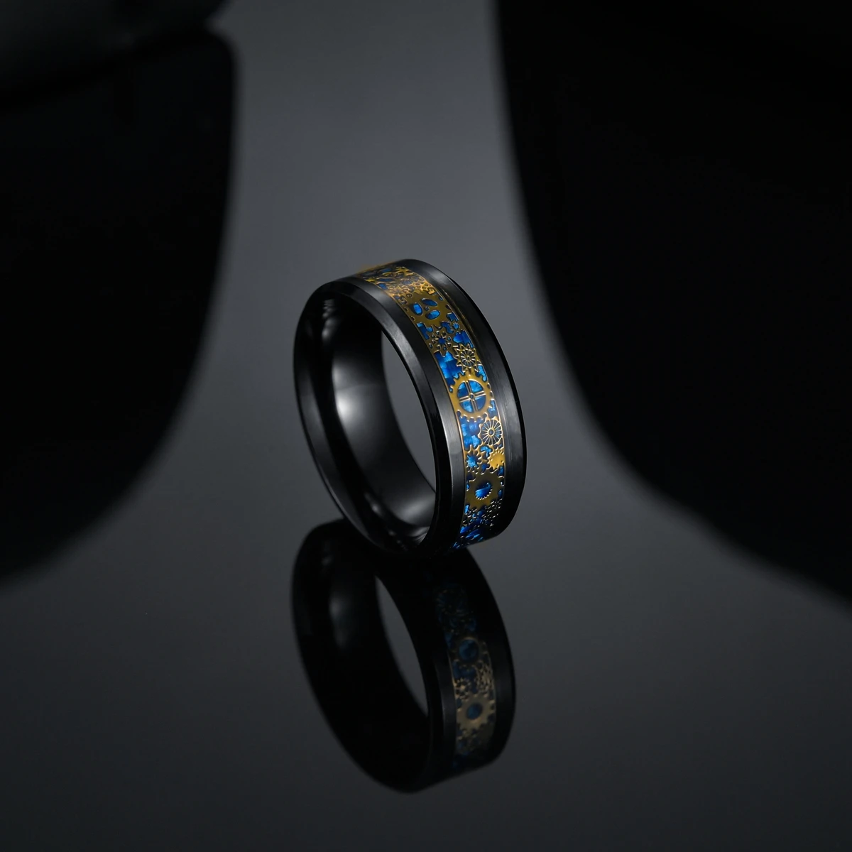 Мужское кольцо, механическое зубчатое колесо, кольцо из нержавеющей стали, скошенные края с синим углеродным волокном, инкрустация, ювелирные изделия на заказ, гравировка