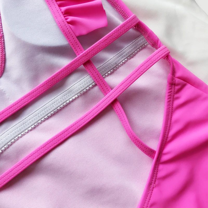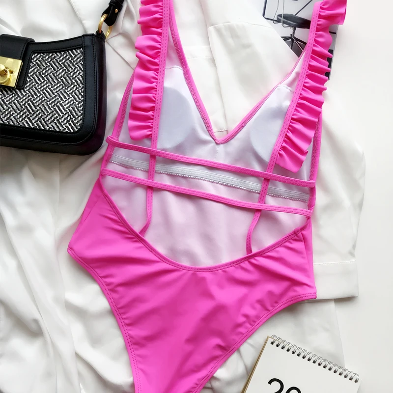 Слитный купальник Peachtan с оборками, женский купальник с открытой спиной, женский сексуальный неоновый Монокини 2021, Бразильский купальный костюм, монокини на лето