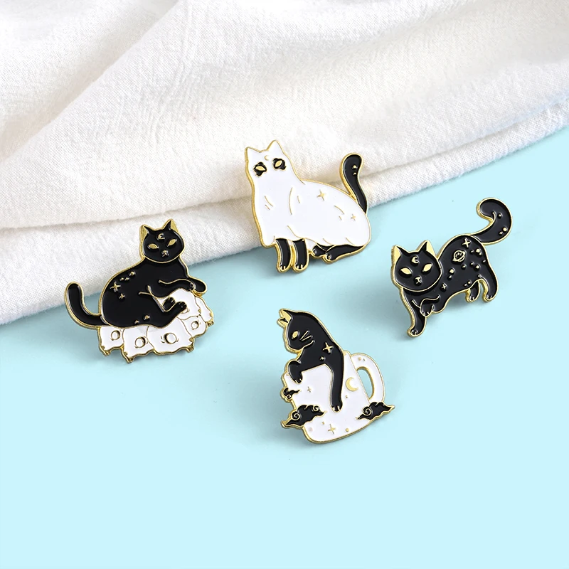 Эмалированные булавки с призраком, кошкой, звездами, котенком, кошкой на заказ, брошь на лацкан, значок, сумка, панк, черное животное, ювелирное изделие, подарок для детей, друзей