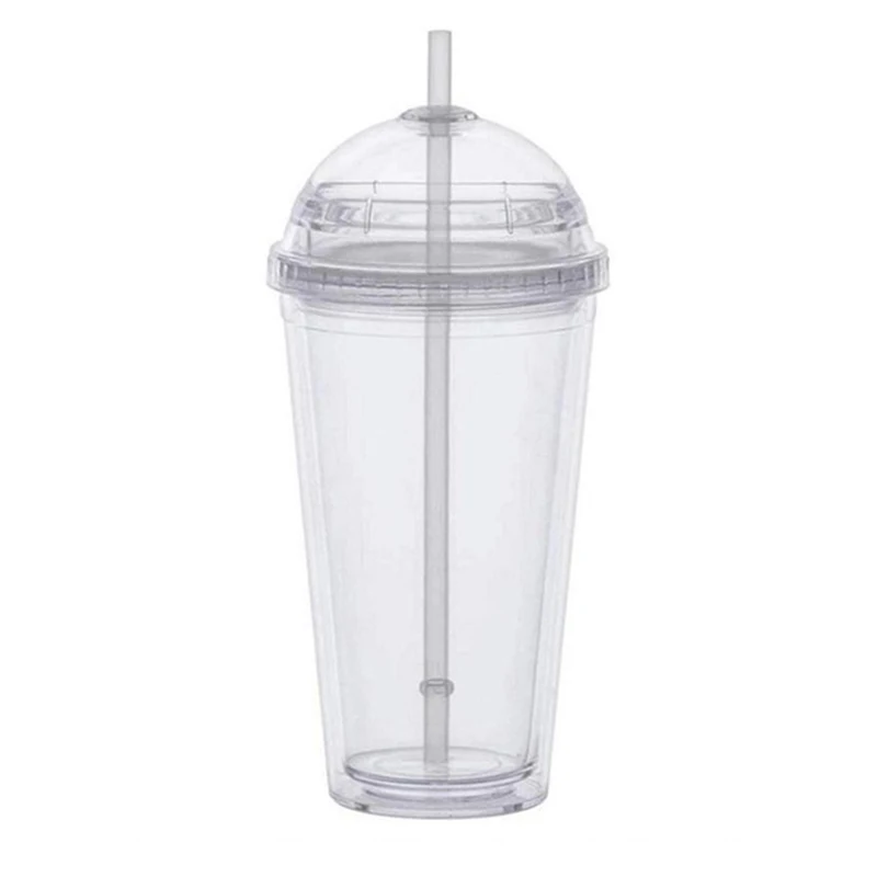20 унций Акриловый стакан с куполом круглой крышкой и соломинкой с двойными стенками прозрачные пластиковые молочные чашки для бутылки питьевой воды