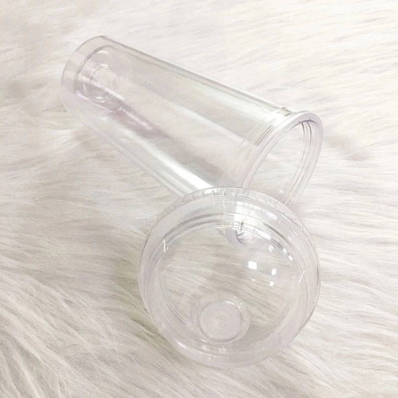 20 унций акриловая стакан с куполом круглой крышкой и соломы с двойной стенкой прозрачные Пластик молоко чашки для питьевой воды