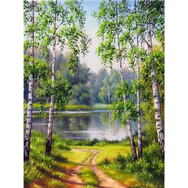 GATYZTORY DIY картина по номерам с принтом в виде березовых деревьев Пейзаж сада украшения дома расписанную абстрактная живопись маслом для Гостиная произведение искусства